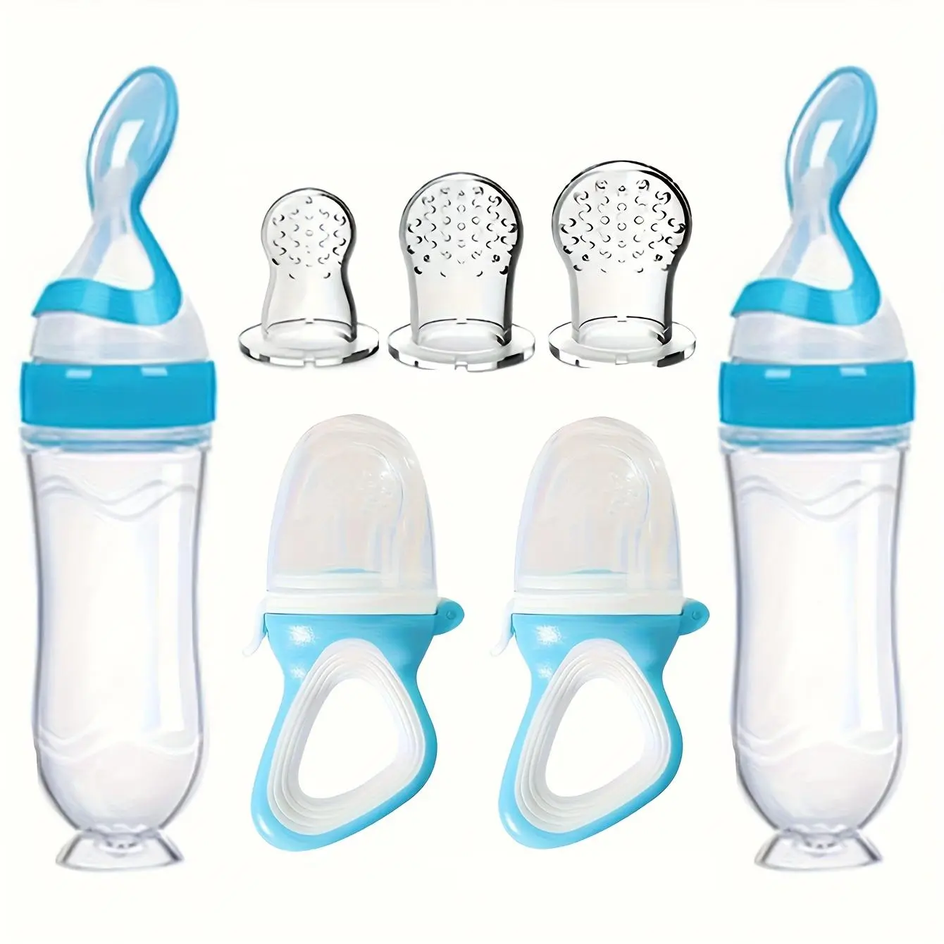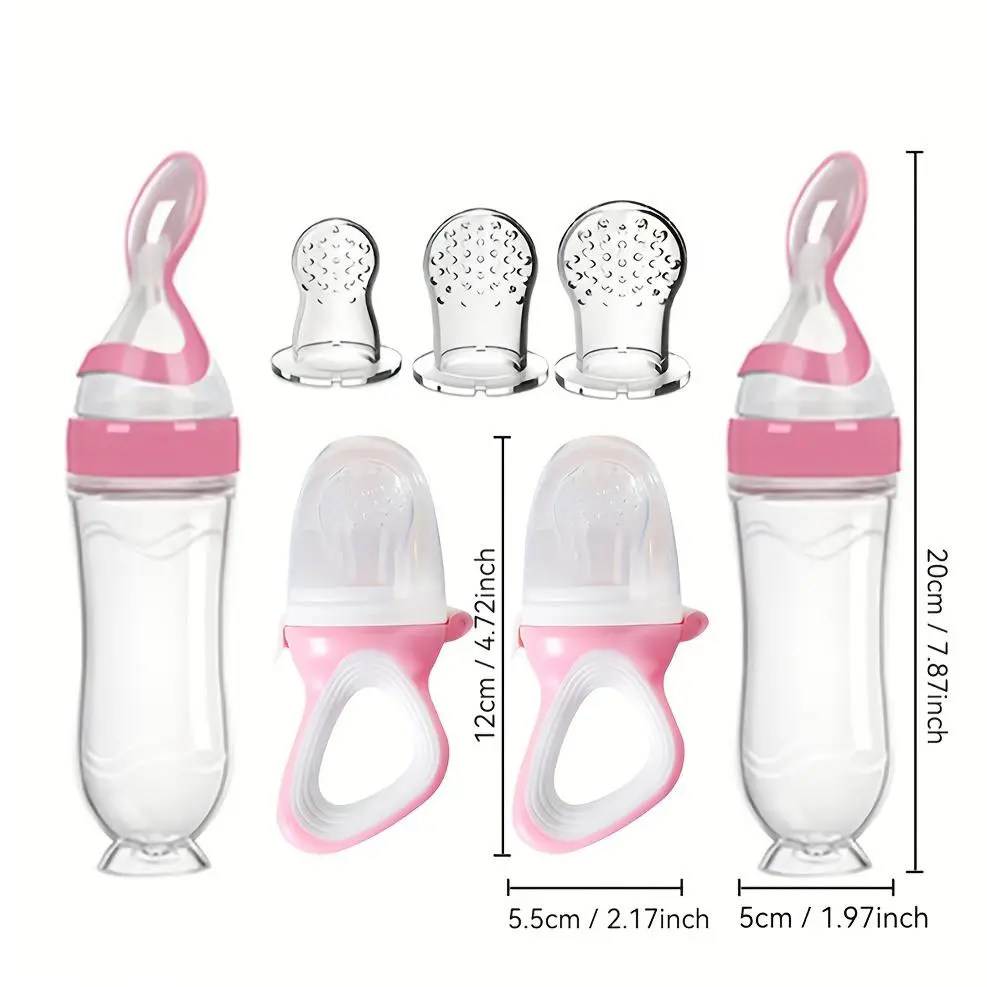 5. Baby Feeding Set, 7 Counts/set Including 2 Counts Silicone Food Storage Bottle & 2 Counts Fruit Feeder & 3 Counts Silicone Mesh Bag, Baby Utensils
