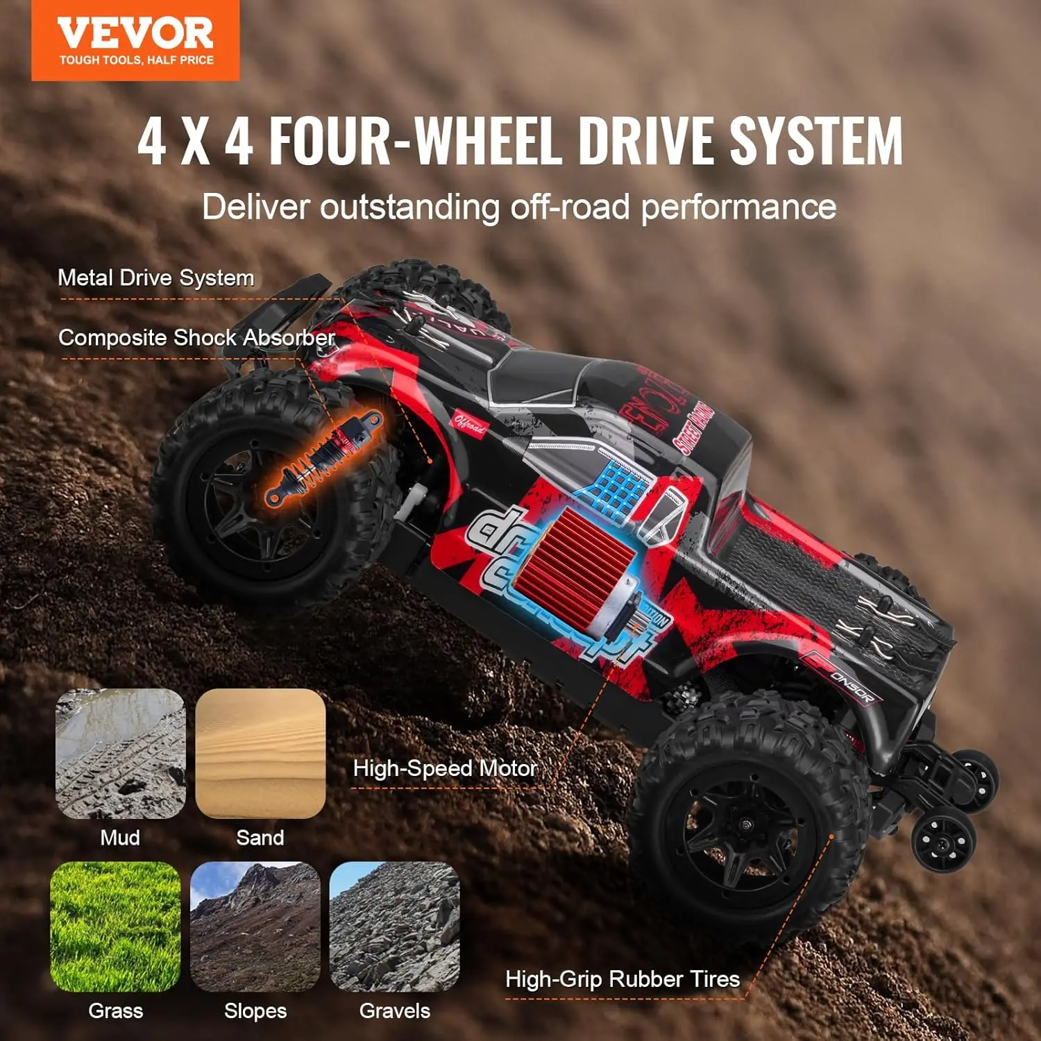 VEVOR Remote Control Car 1:18 Scale RC Car for Adults, 36 km/h High Speed, All Terrain Waterproof IPX4 Electric 4WD Off-Road Monster Truck with 2 Batteries Hobby RC Truck Xmas Gift for Adult and Boys