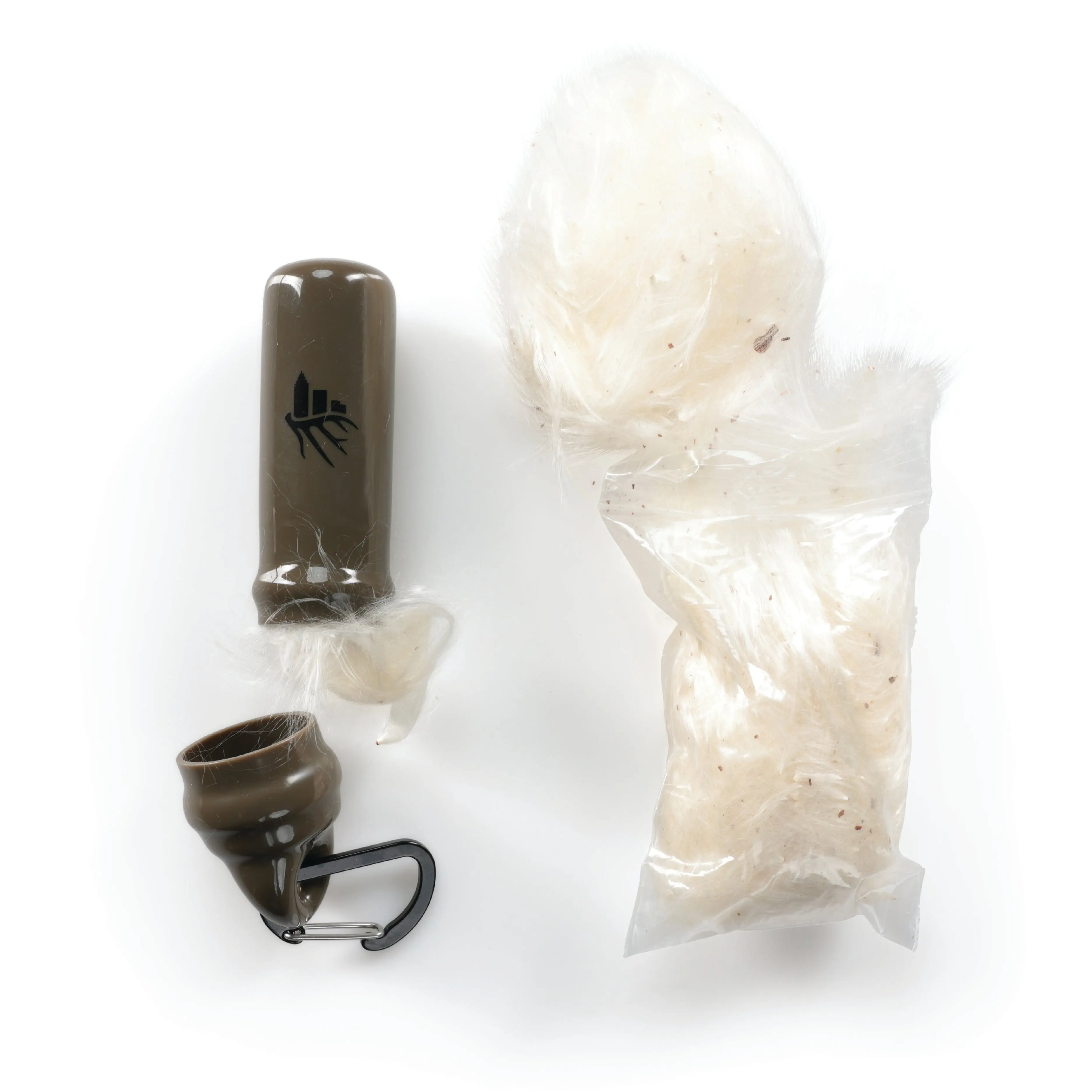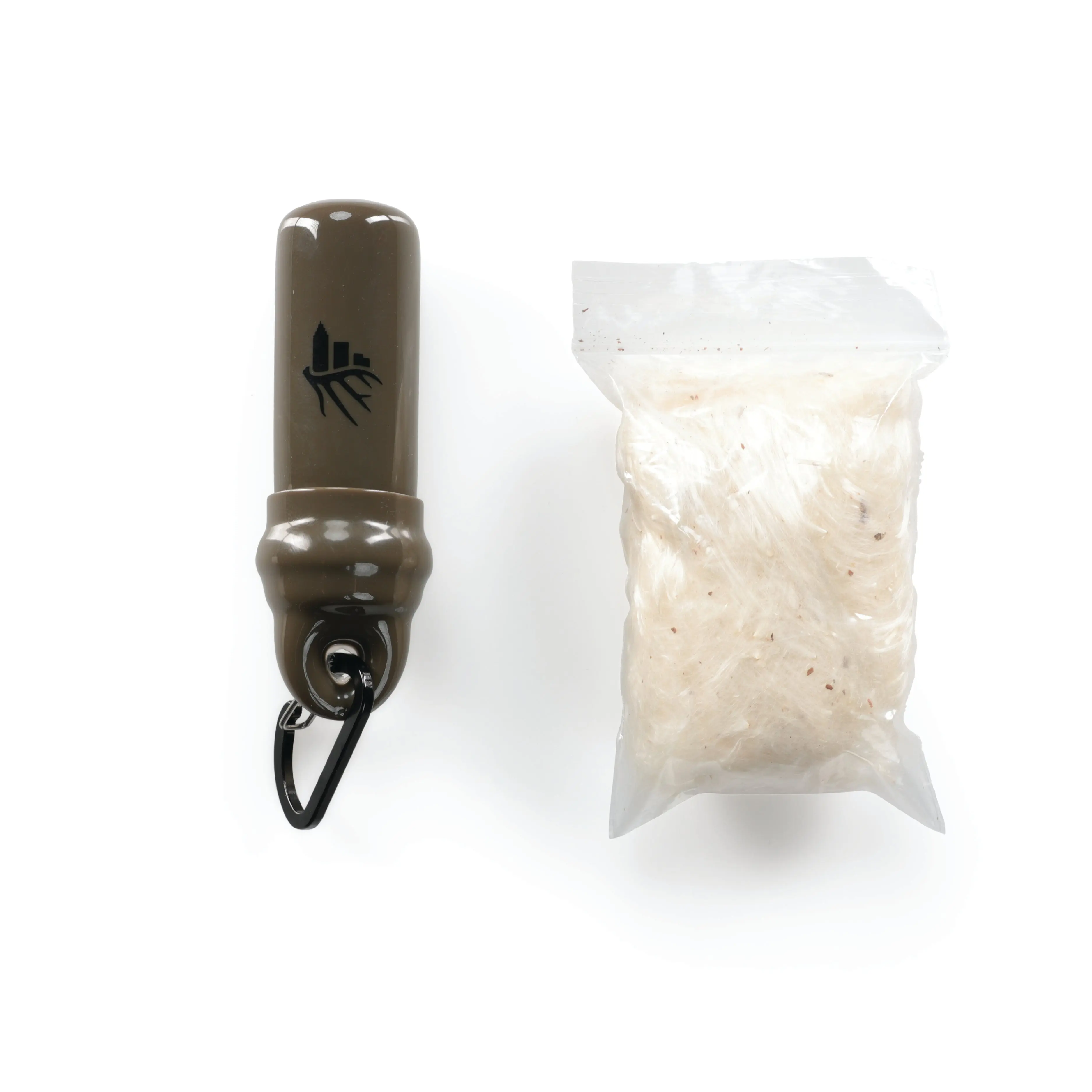 Ditch the powder wind indicator and get an accurate read on the wind with milkweed. Unlike powder which dissipates after a few yards, milkweed floss will float in the wind for long distances as it flows over and around terrain. This enables you to read the wind where it matters most, not 2 feet from your body, but where the deer will be. We designed this milkweed dispenser to be one handed use, and fit into the side pocket of your bino harness or to clip onto your belt loop or backpack. We found that a 7/32" hole is the perfect size for the floss. And we include enough milkweed floss to fill up the dispenser 2 to 3 times, which should last you a couple seasons. The milkweed floss comes from wild grown milkweed harvested by hand in Pennsylvania.