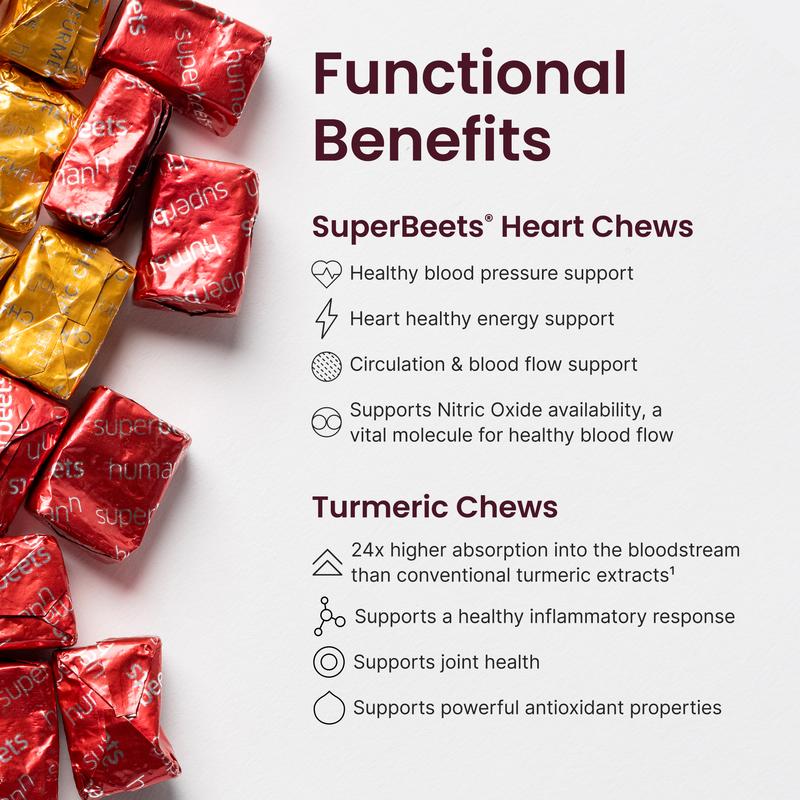 ·Combination: This pack includes both SuperBeets Heart Chews and Turmeric Chews.