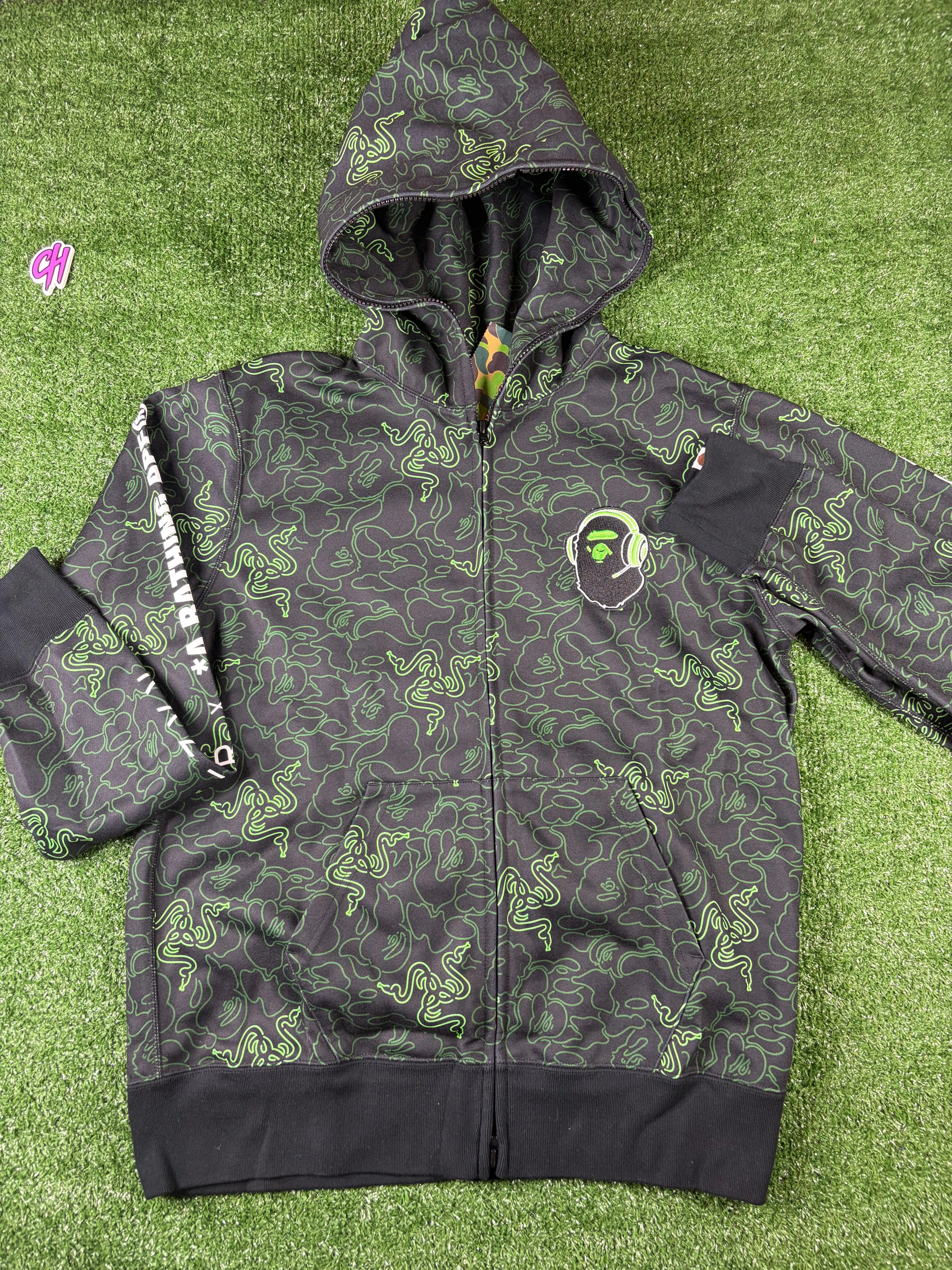 Bape X Razer Neon Camo Full-Zip Hoodie Size XL