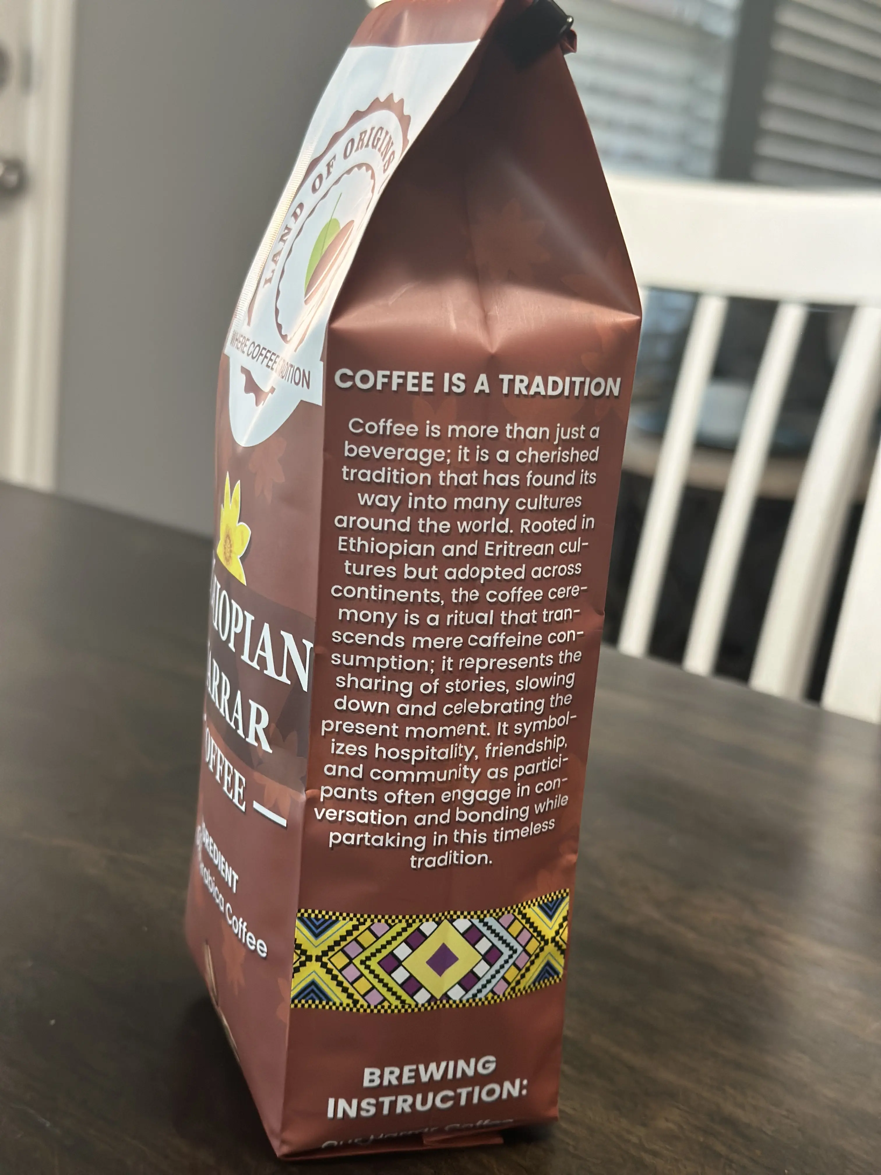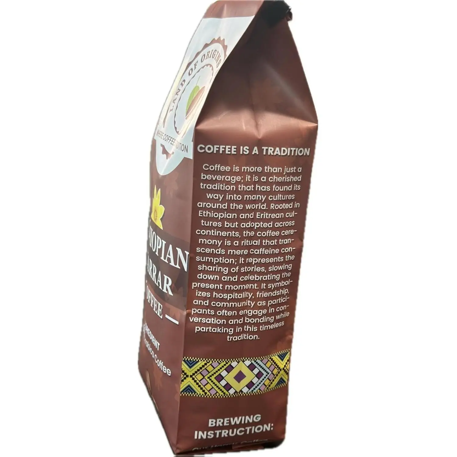 Land of Origins Coffee ETHIOPIAN HARRAR WHOLE BEANS COFFEE, medium roast, single origin,100% Arabica, natural Ethiopian coffee 16oz (1 pound)