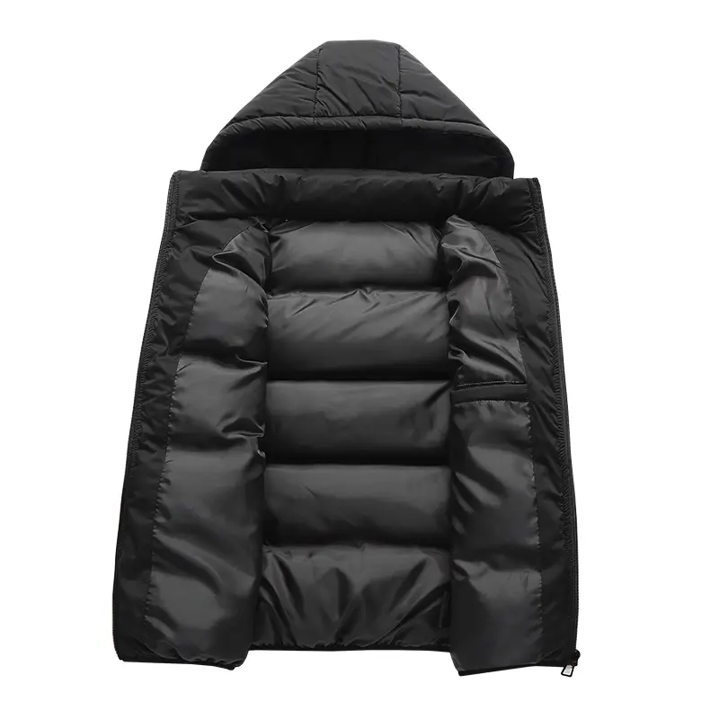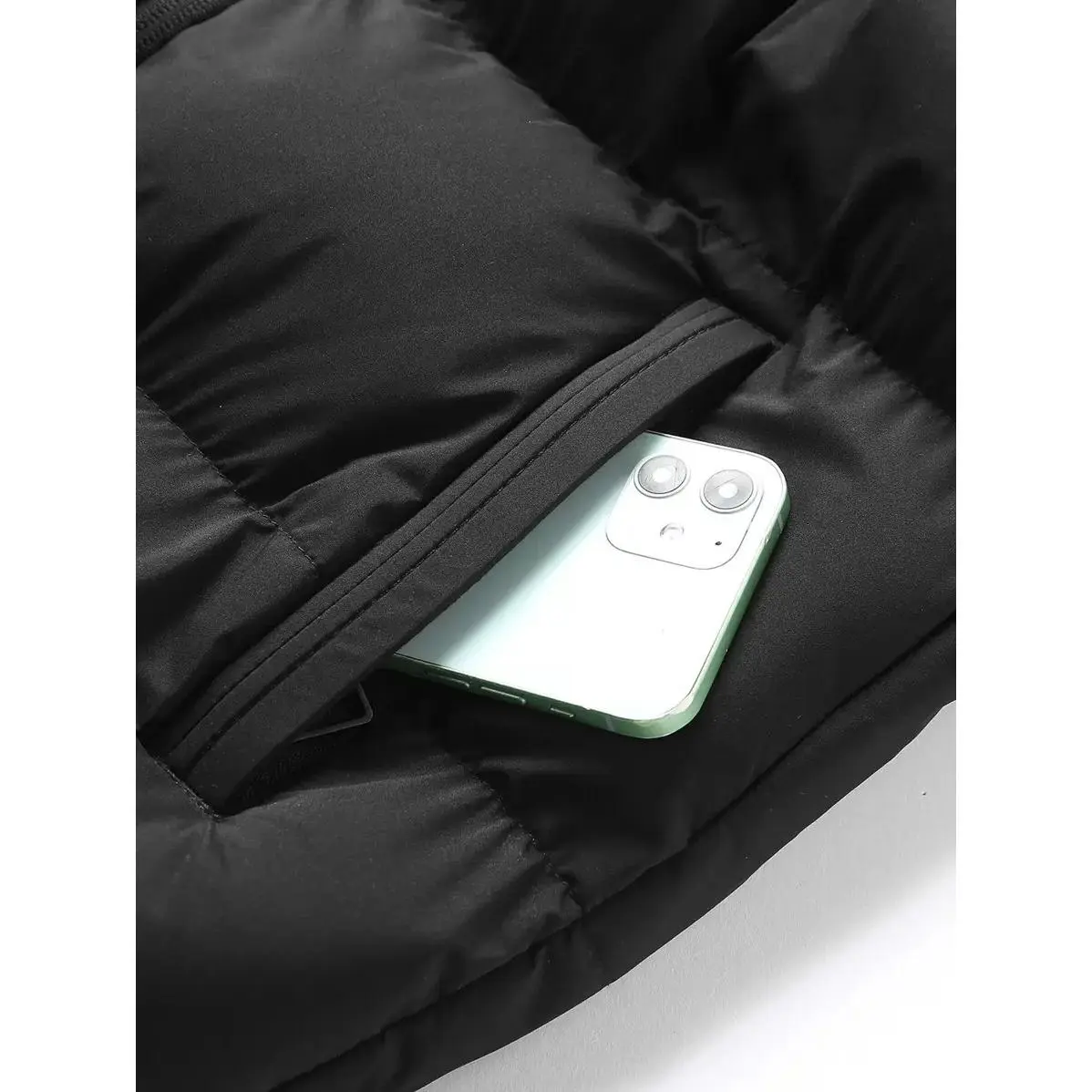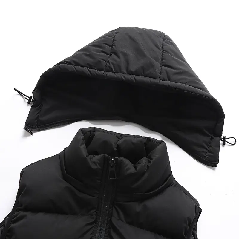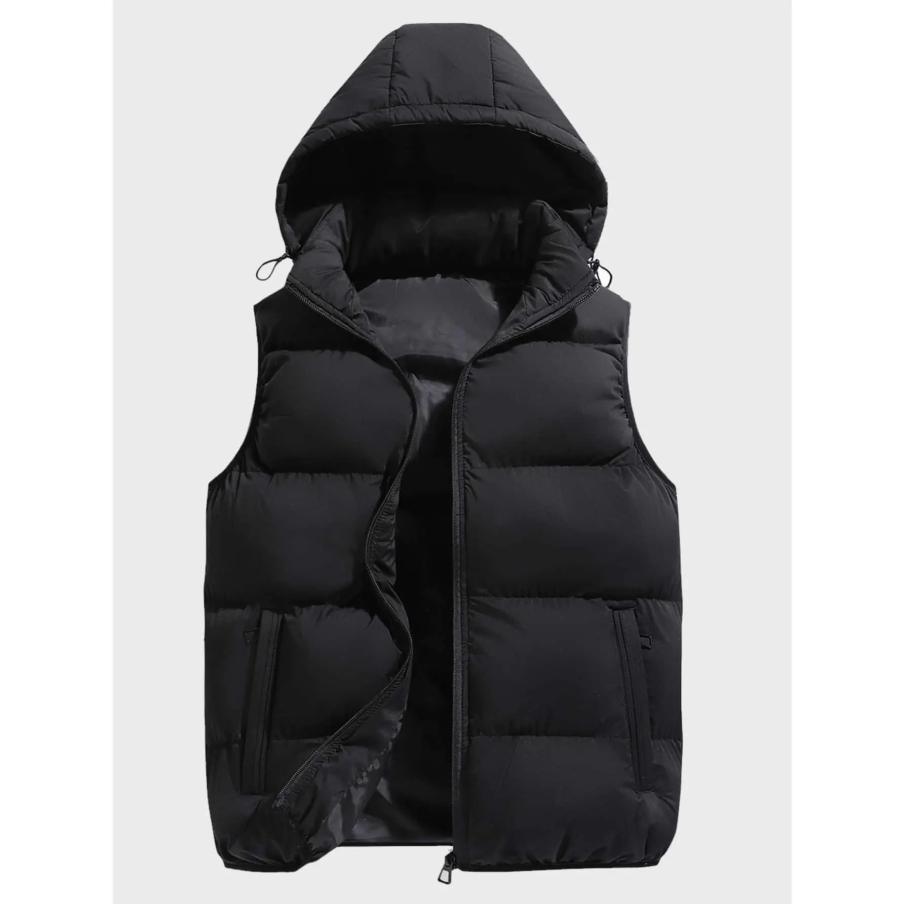 Men's Detachable Hood Solid Color Puffer Vest for Autumn or Winter Sleeveless Outerwear Black Polyester Regular Fit with Drawstring Pocket and Zipper Sports Outdoor