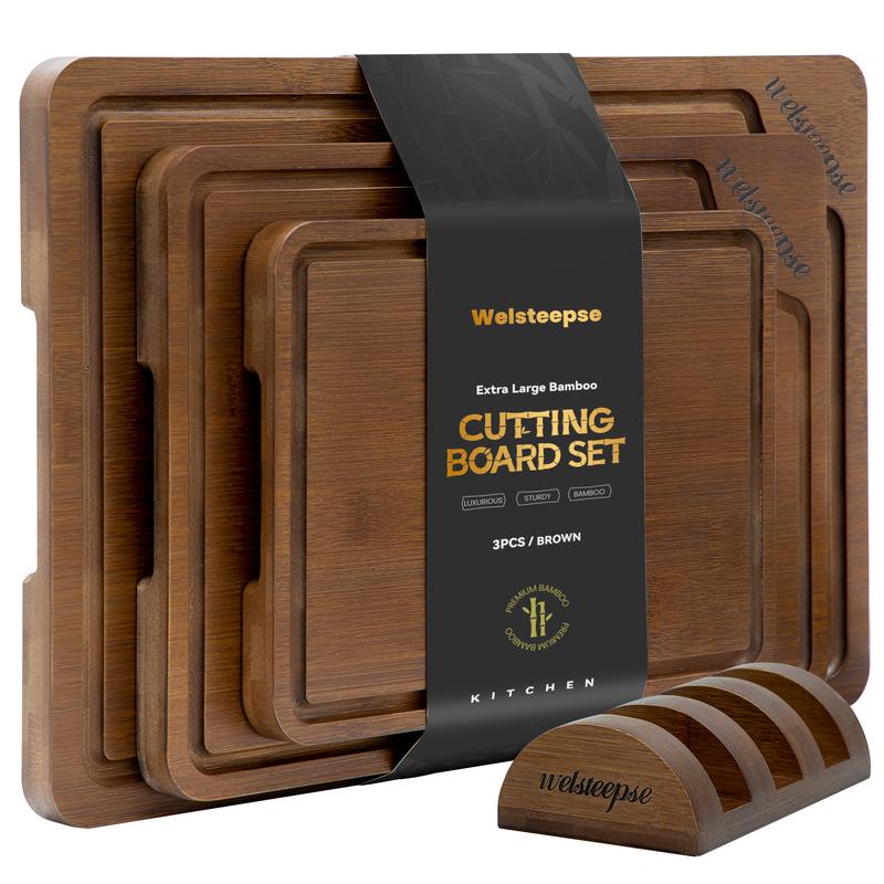 Natural Bamboo Cutting Board Set (3-Piece) – Oversized & Premium