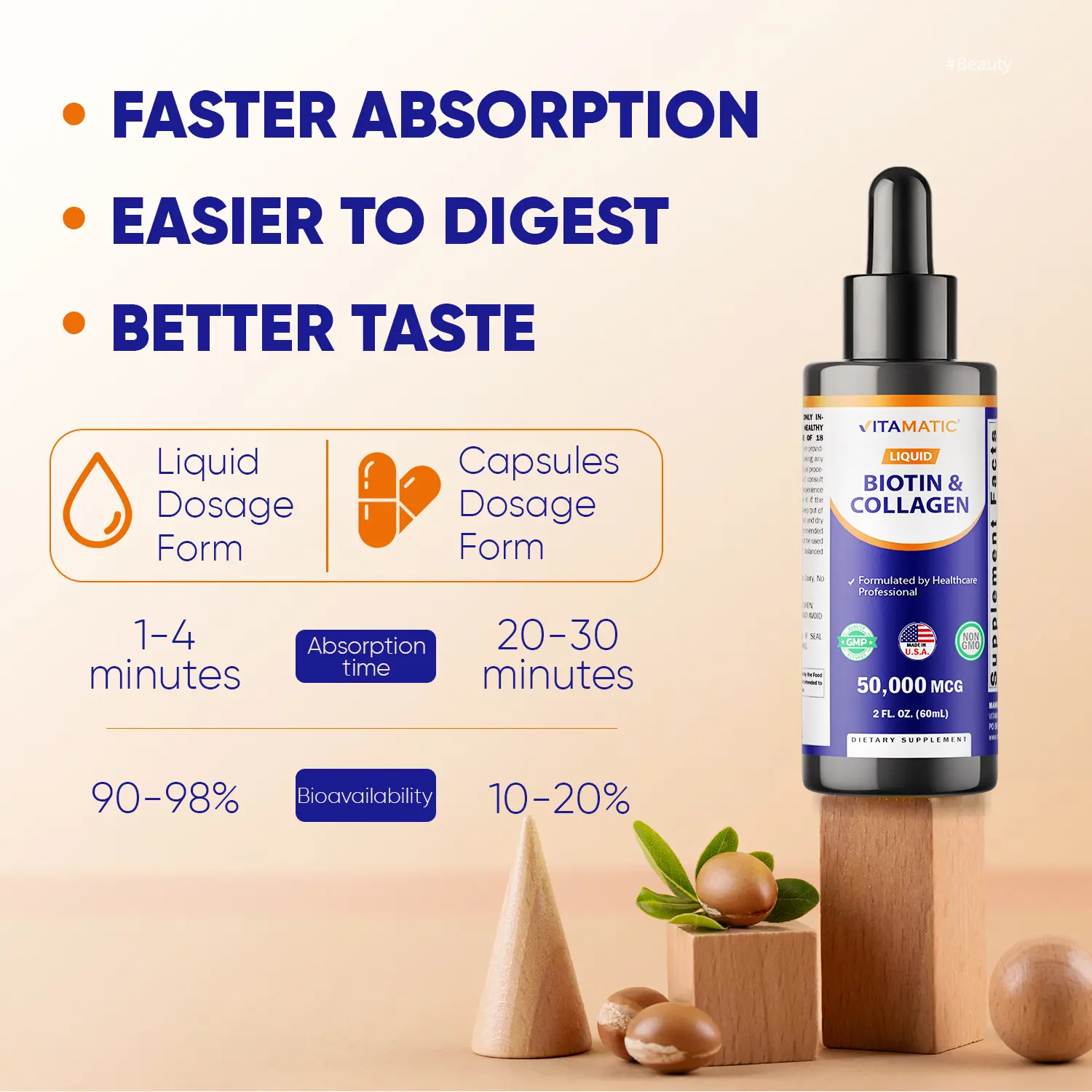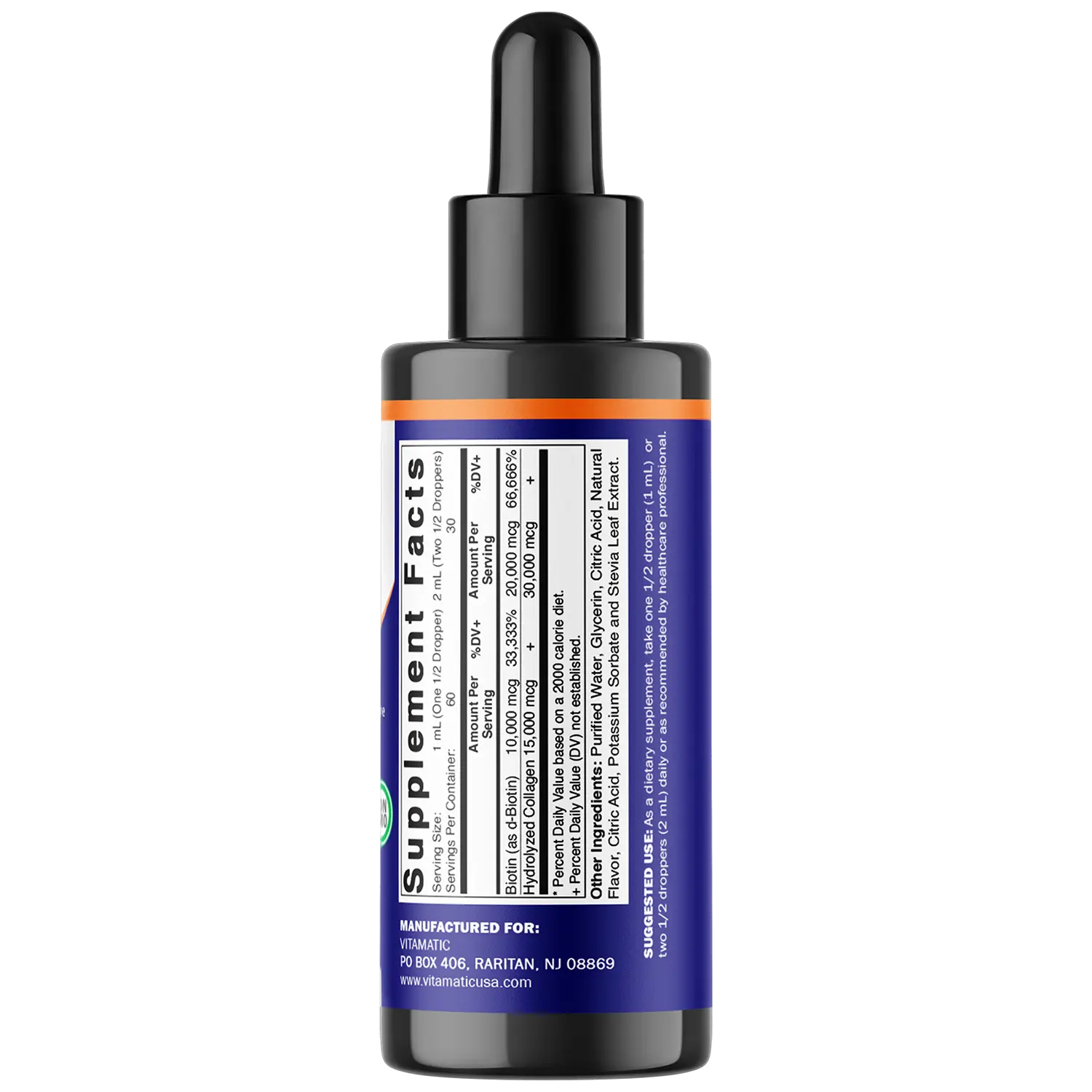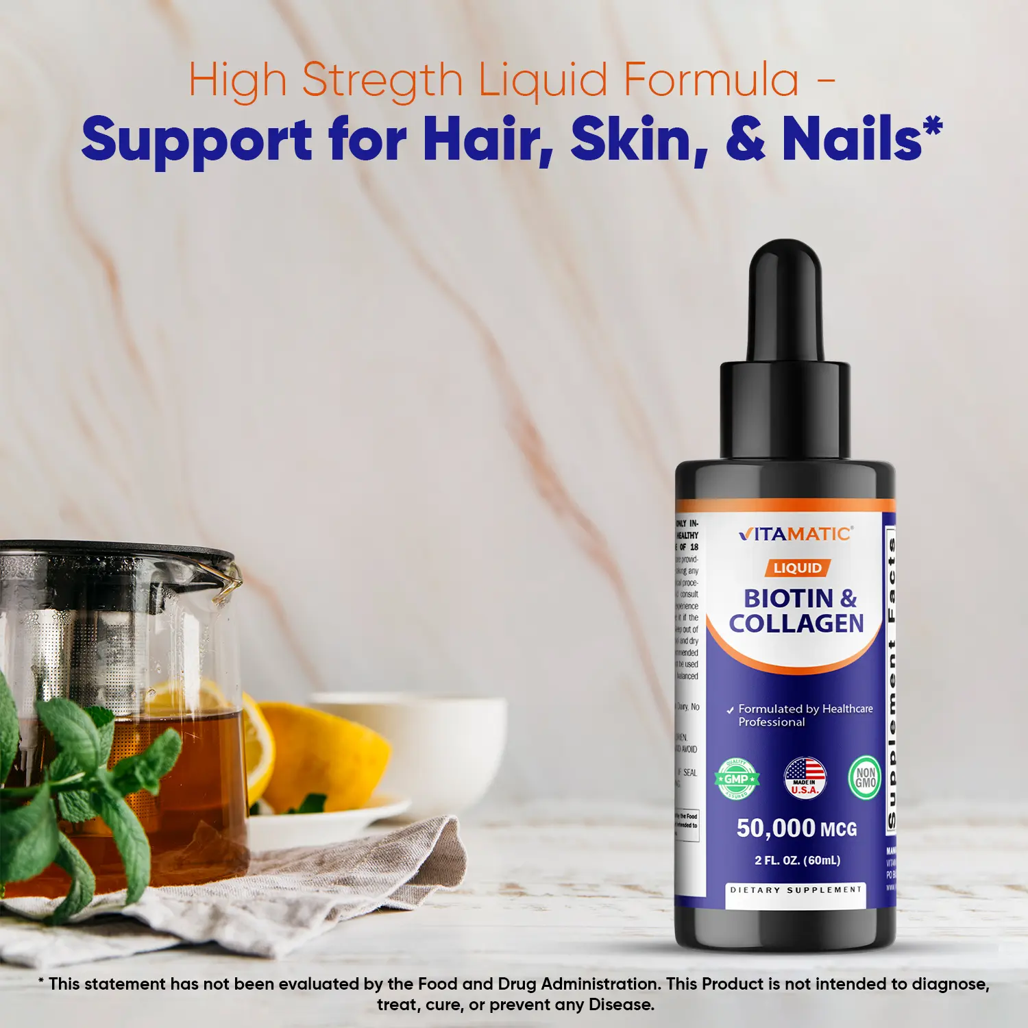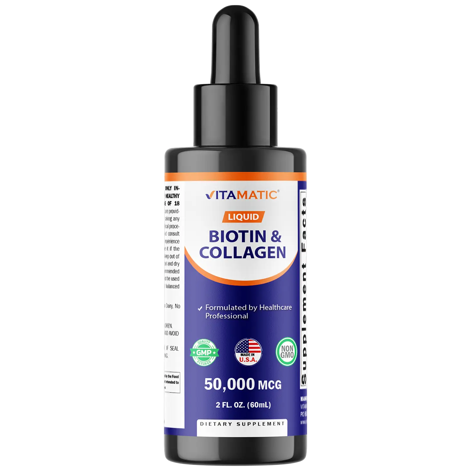 🌟 Vitamatic Liquid Biotin & Collagen Drops – 50,000 mcg – 2 fl oz
