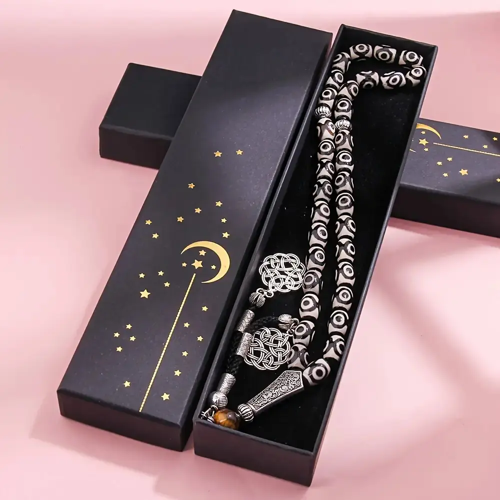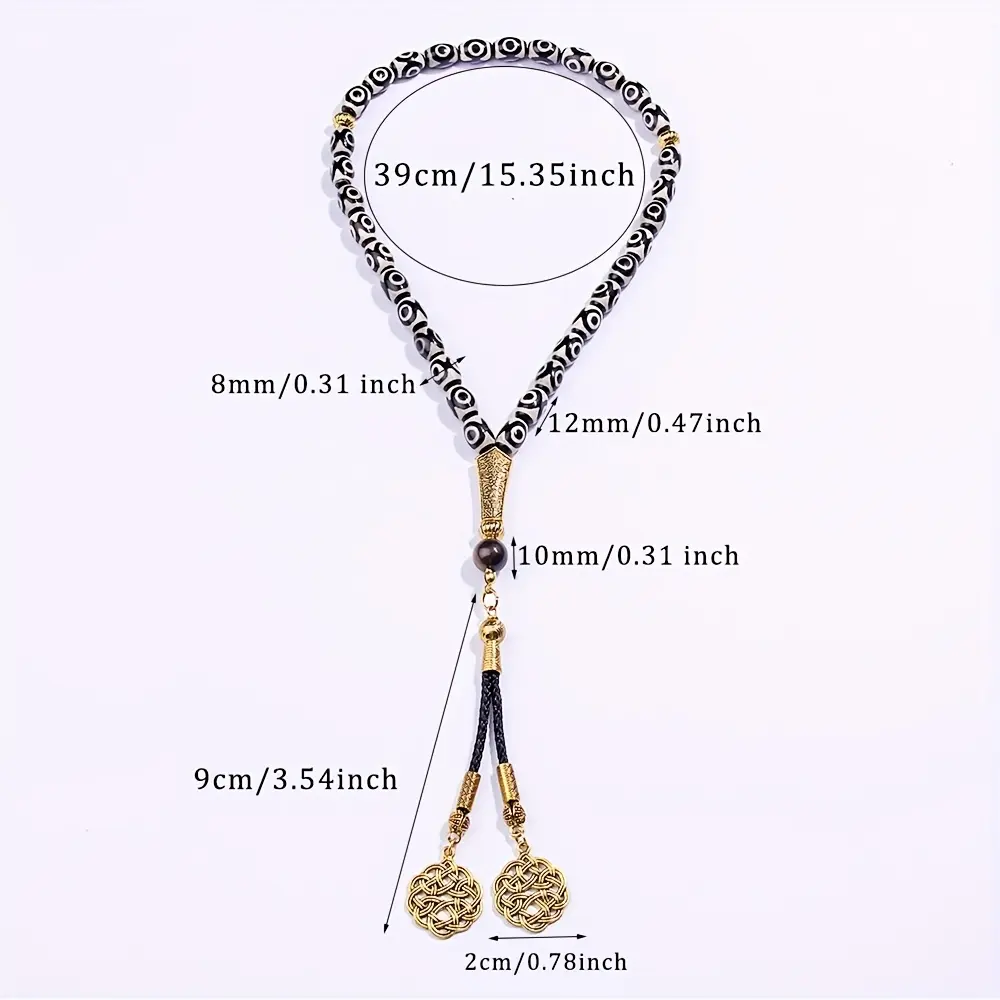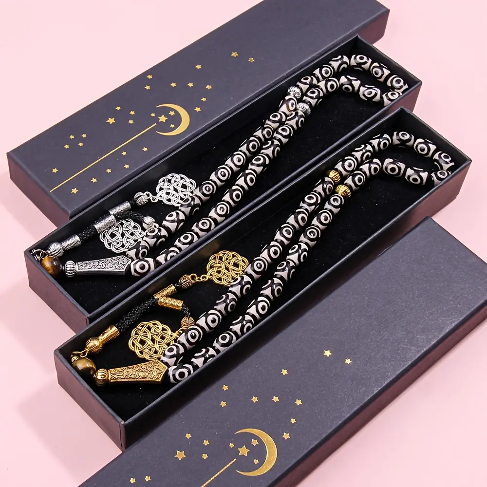 33pcs Agate Bead Bracelet Misbaha Tasbih - 8x12mm Handmade Prayer Rosary Necklace - Suitable for Worship Salah and Recitation Dhikr - Ideal Gift for Eid al-Fitr, Ramadan - Suitable for Daily Prayers - Comes with Premium Gift Box