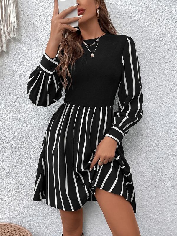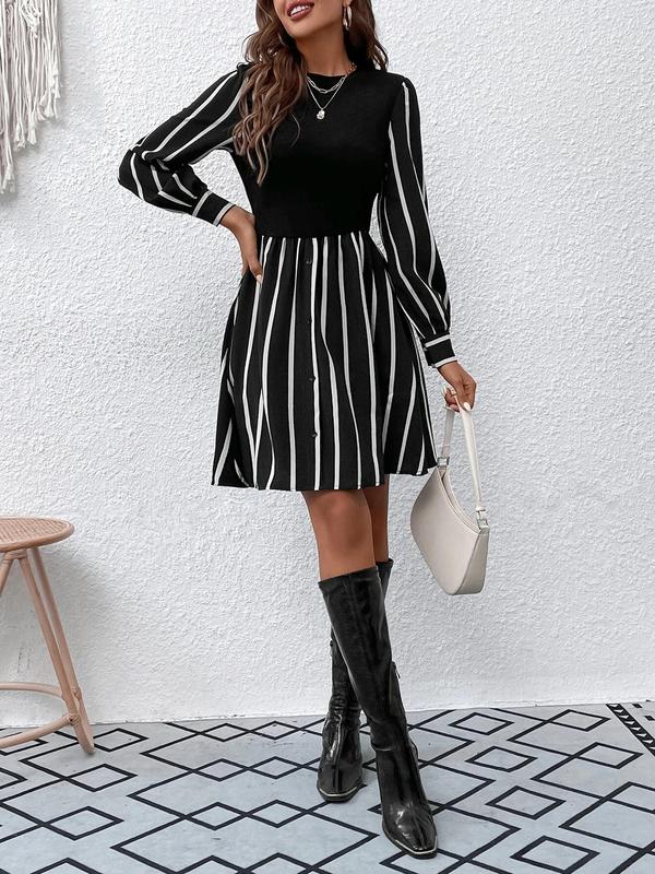 Women's Striped Print Button Dress, Colorblock Design, Long Sleeve, Casual Style, Perfect for Fall & Winter, Stylish Women's Clothing #sweaterdress #dressshop #blackfridaystylesteals #longsleeveformaldress #blackminidress #winterdresshaul #cozyholidayootd #oversizeddress #blackmaxidress #sweaterdresses