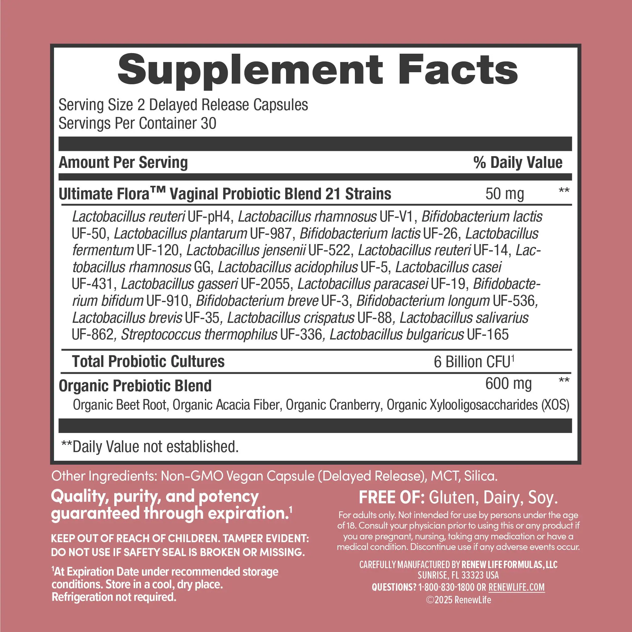 ·Supports healthy vaginal odor, pH & flora*