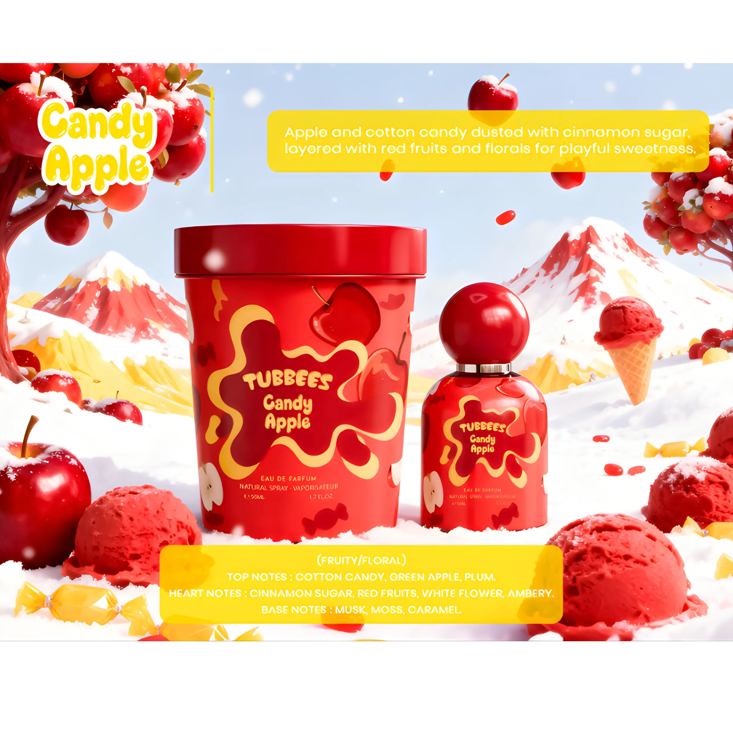 Experience the unique blend of flavors with TUBBEES CANDY APPLE Eau de Parfum. This fragrance will keep you feeling sweet and playful throughout the day. 🍎🌸
