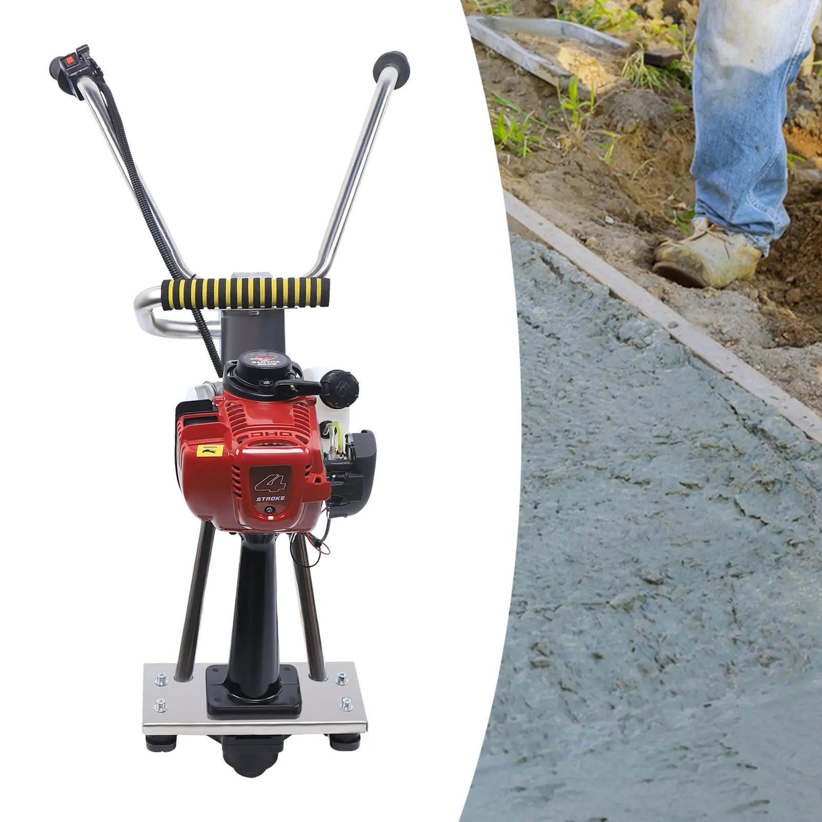 ·High Efficiency: 4-stroke engine (900W) with high displacement (35.8cc), fast rotation speed (9500-10000 times/minute), and large exciting force (573lbs) for strong power.