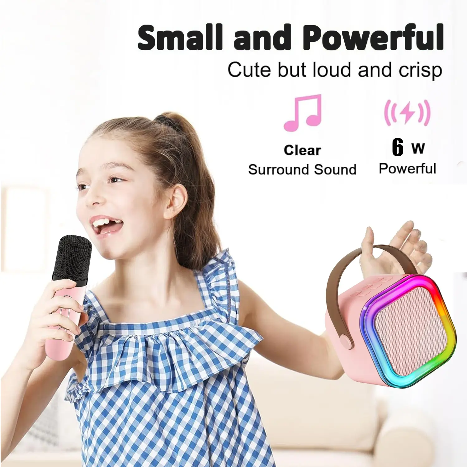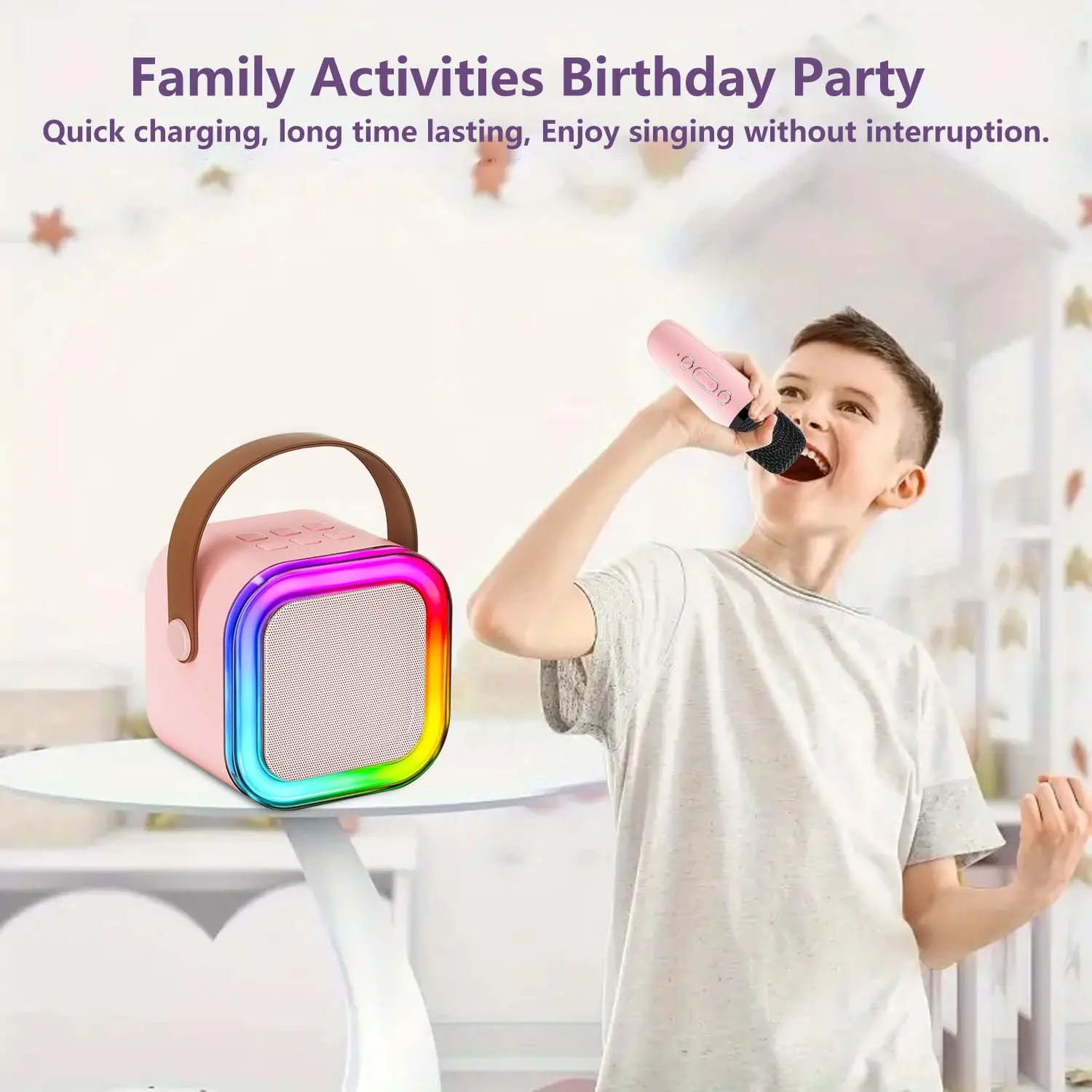 ·[Cute & Compact] - This wireless karaoke microphone fits in your backpack, Comfortable handle sized for small hands; quick move from bedroom concerts to backyard dance-offs, This portable Bluetooth speaker and kids karaoke machine for Parties, Birthday, Meeting, Classroom, Family Activities, toys for girls/boy—fun without the bulk.
