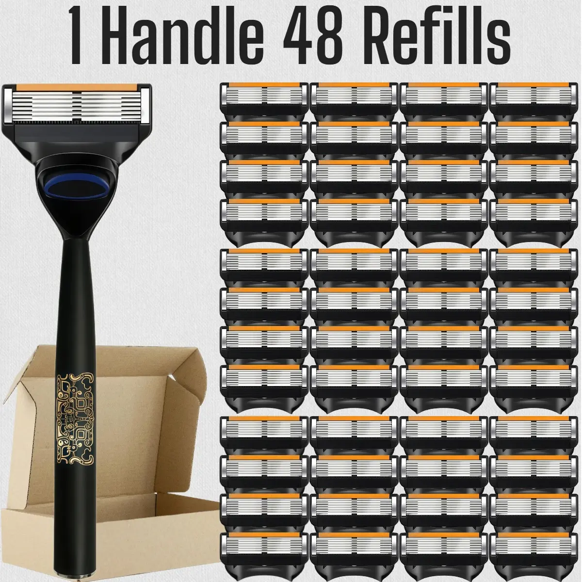 Men's Shaving Razor Set, 1 Handle & 12/24/36/48 Refills, Sharp Portable Design, Daily Care, Sealed Packaging, Dustproof Waterproof Rust-Proof