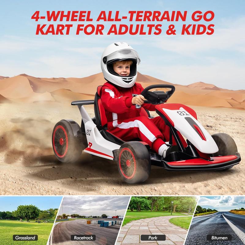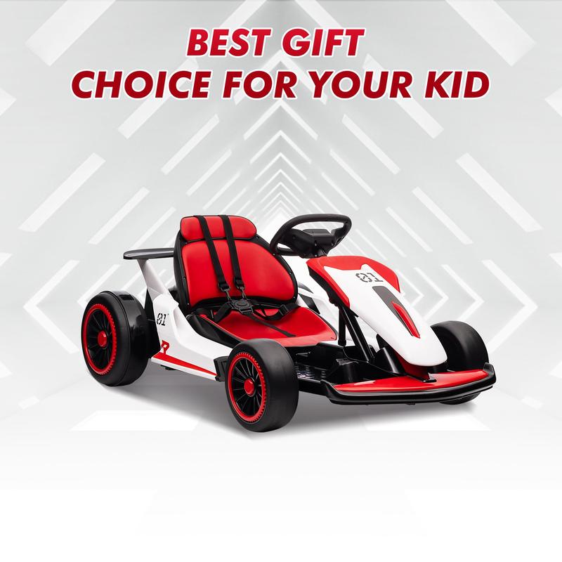 · Kids' Racing Experience: Feel like a real racer! Equipped with LED headlights and brake lights, this electric drift kart offers a thrilling and realistic driving adventure right in your driveway.