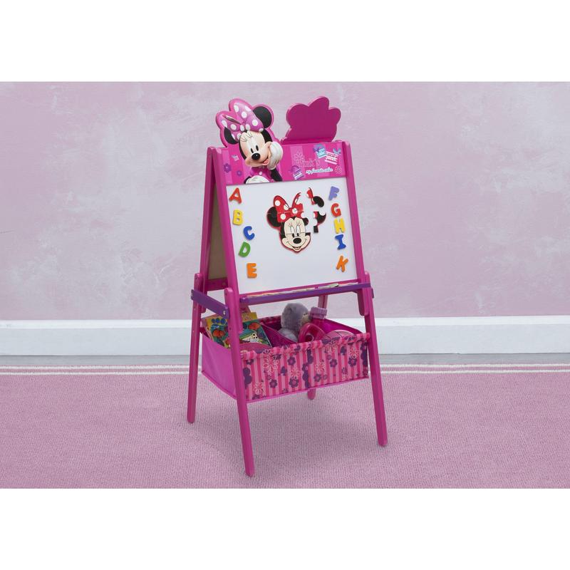 Sure to inspire the sweetest sketches, this Minnie Mouse Activity Easel with Storage from Delta Children is designed with a magnetic, dry-erase surface on one side and a chalkboard on the other. Featuring a cute silhouette of Minnie on top, it includes a magnetic character puzzle, alphabet magnets and two fabric bins underneath, so your child can store chalk, markers and all their works of art.
