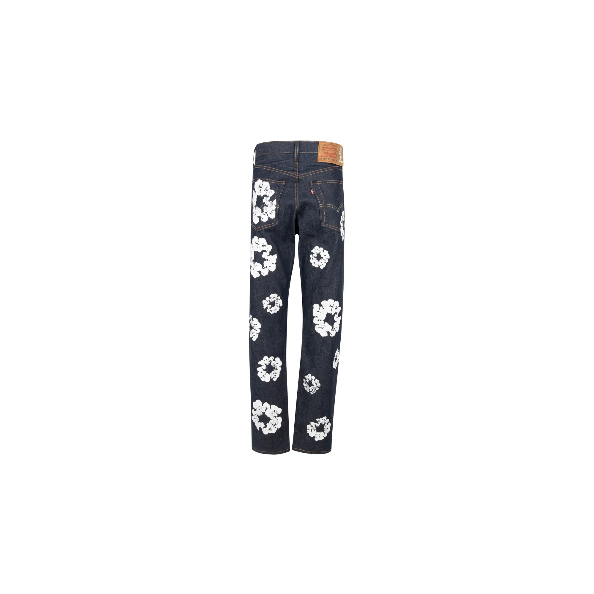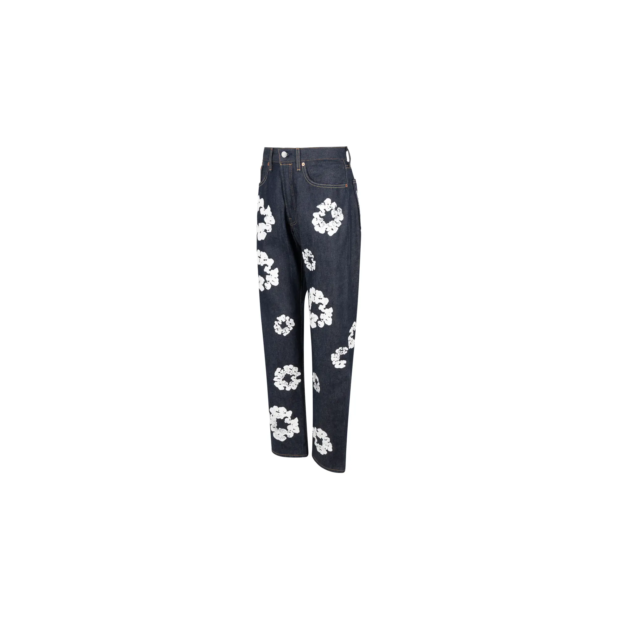 Make a bold statement with DENIM TEARS The Cotton Wreath Denim Jeans "Selvedge". These premium jeans are crafted from high-quality selvedge denim, giving you a structured fit that is built to last. The design features the compelling Cotton Wreath graphic, making them an instantly recognizable and deeply meaningful piece of streetwear. With a classic denim color and superior construction, these jeans deliver a mix of raw style and essential comfort.