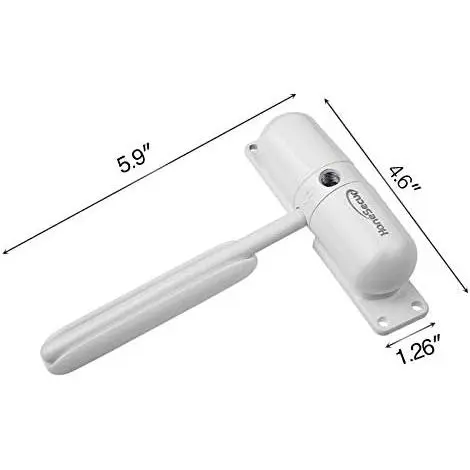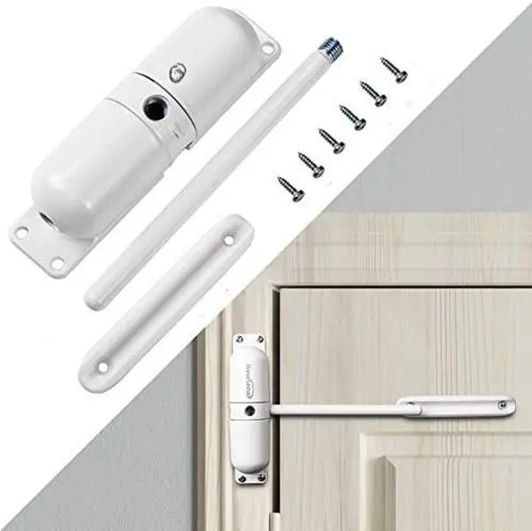 Package includes: Surface mounted spring- door closer with instruction, tension rod, sliding plate and hole plugs to cover adjustment holes in closer after the required tension is set