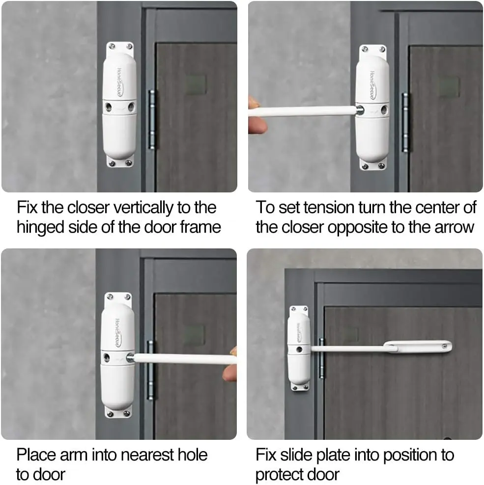 Convenient door closer: The closer arm of the safety spring closer can swing a full 180 degrees. Use these door closers to convert hinged door to self-closing door, you can easily and quickly operate