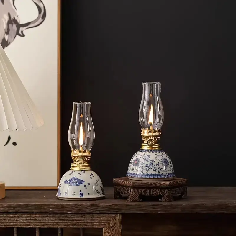 Porcelain Butter Lamp Without Oil, Lamp Stand Ornament, Outdoor Camping Atmosphere Lamp, Indoor Decorative Ornament, Table Decoration, Valentines Day Gift, Lighting