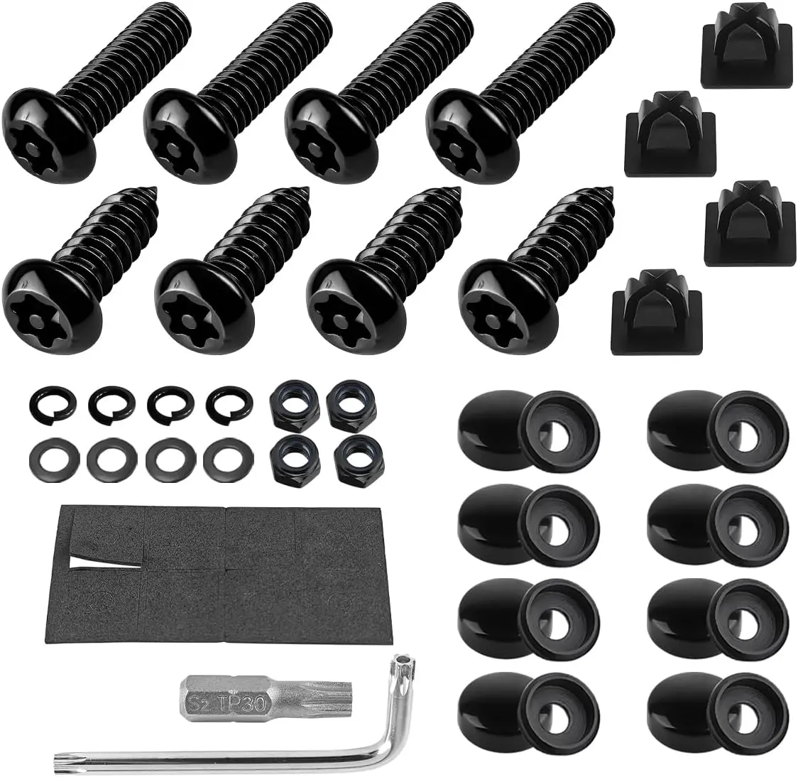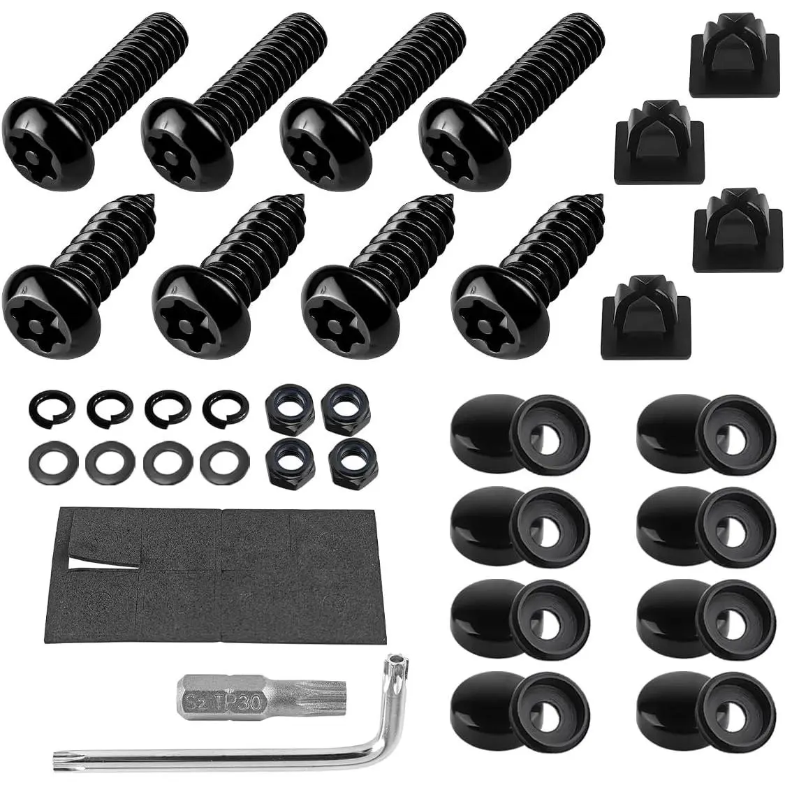 Compatibility: License plate screw kit which we provide include, screws , fastener nuts, , caps and washers.1/4"X3/4"(M6*20MM) long screws are suitable for the combined mount of tag plate, frame, and cover of , , , and . Self-tapping screws fit domestic & License Plate Holes that use Nylon/Plastic Retainer. We provide nylon plug- ins to adjust the size of the bumper pre-drilled holes.