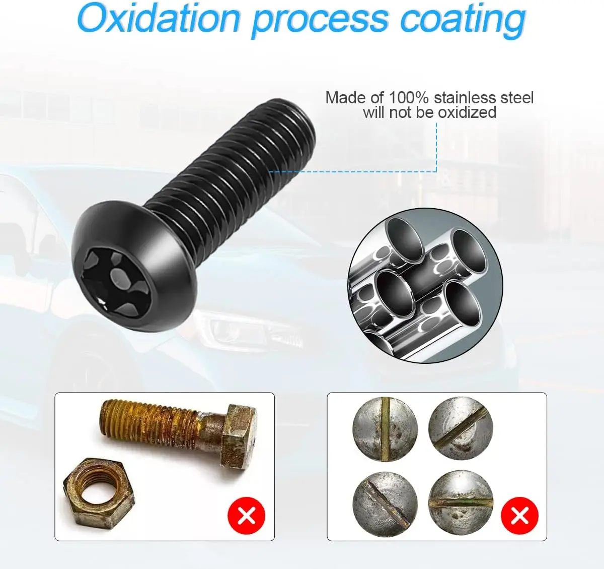 High quality stainless steel license plate screw set: Rustproof Number Plate Screws are made from 304 stainless steel, heavy-duty, sturdy and durable, -resistant, rust-resistant and weather-resistant.