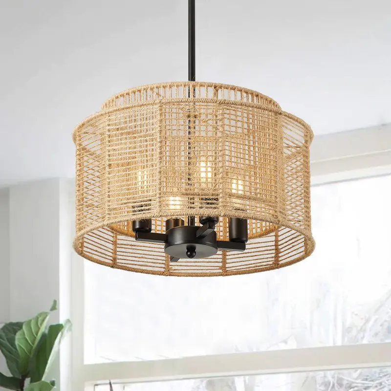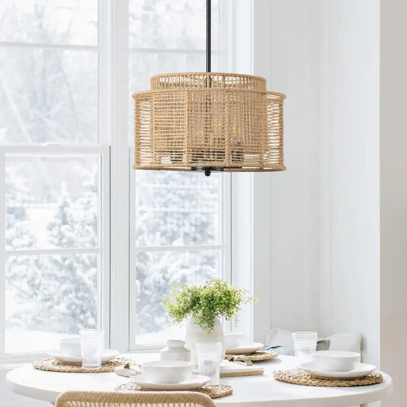 【Perfect Design & Applications】: The farmhouse pendant lights are hand-woven with hemp rope, which is a natural material that exudes a warm and earthy aesthetic. It can be incorporated into different interior themes, from bohemian and coastal to farmhouse and minimalist.Combining farmhouse and bohemia style, this pendant light radiates soft light, perfect for decorating living rooms, dining rooms, kitchens, bedrooms, basements, entryways, hallways, laundry rooms, libraries, bars, cafes, and more.