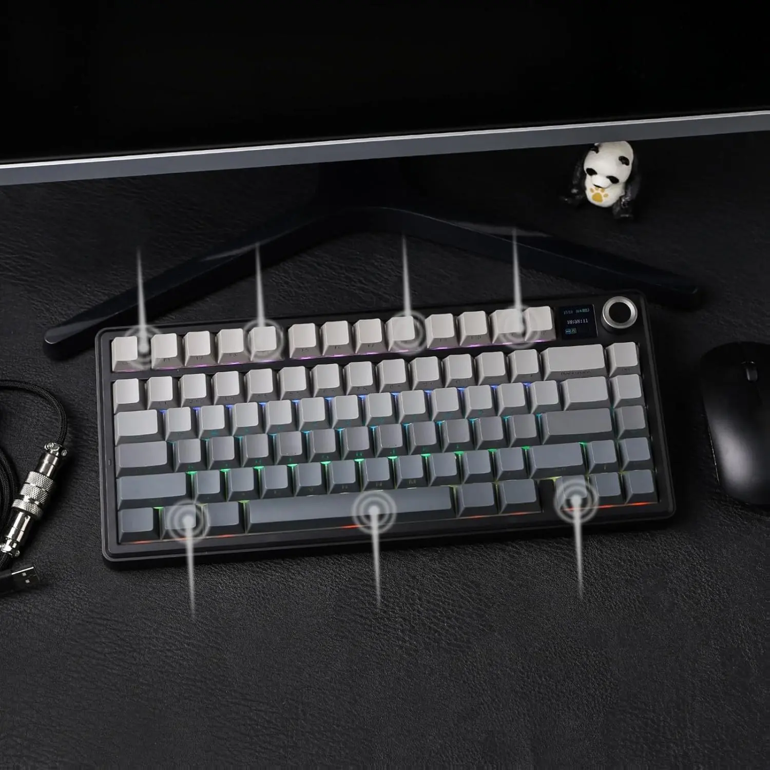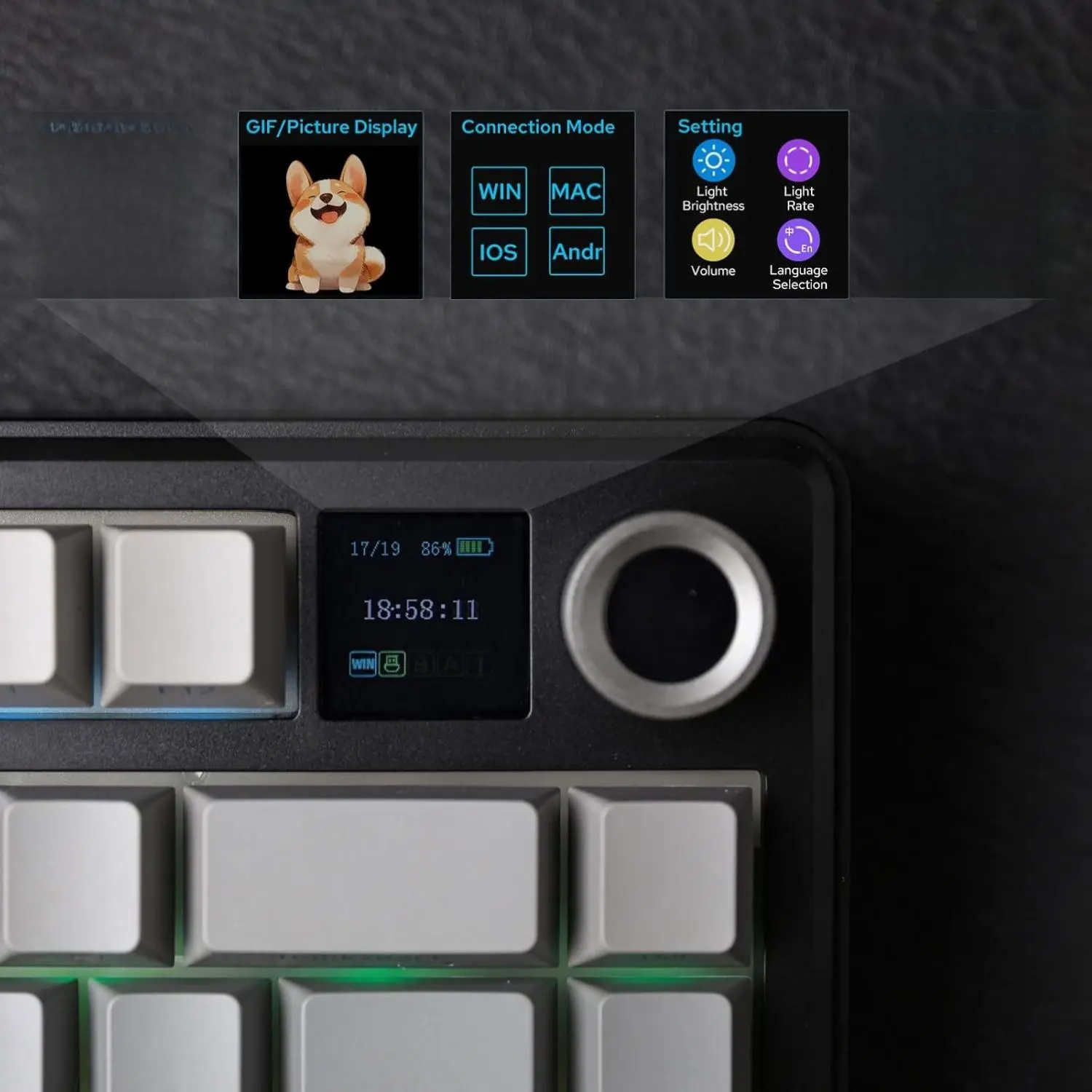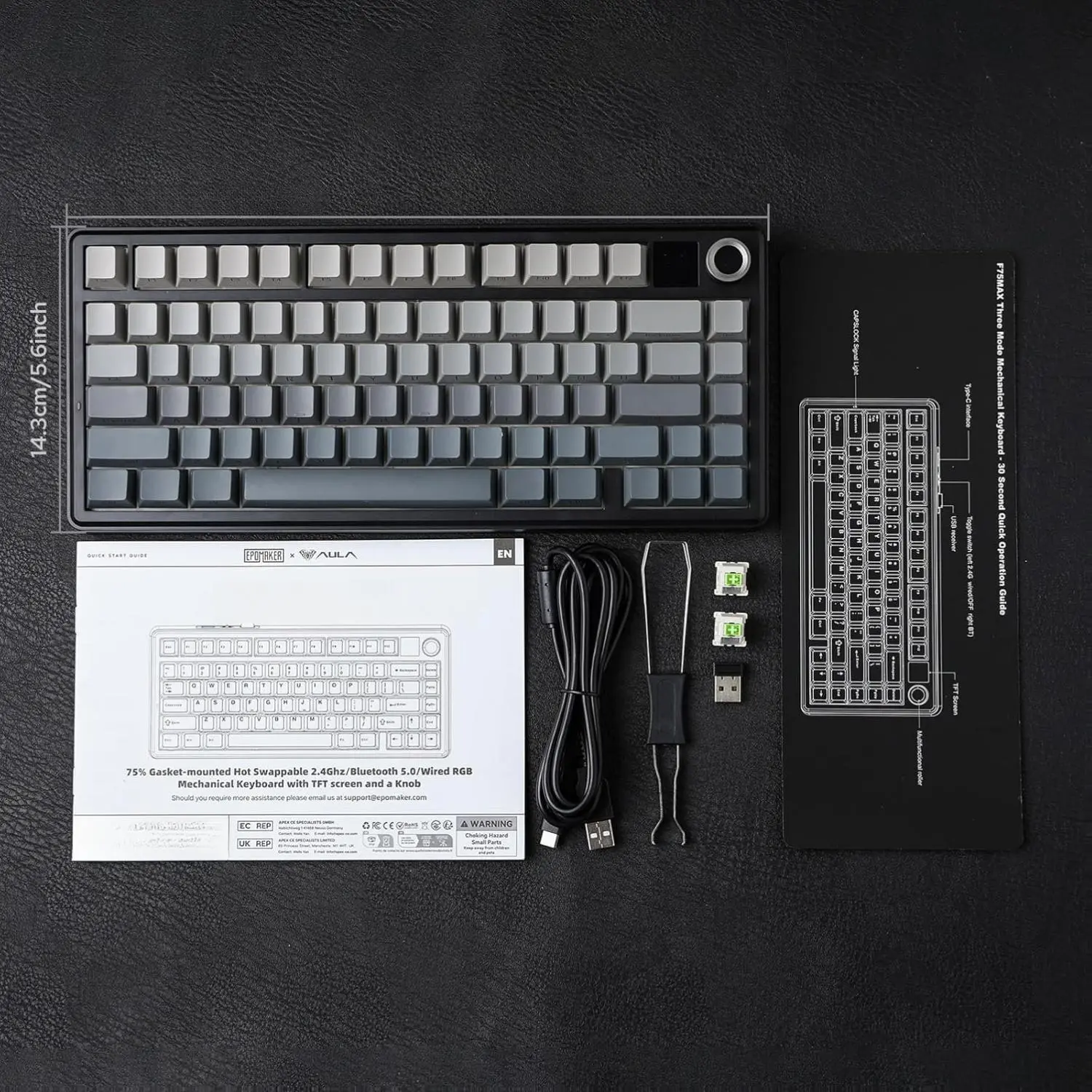 ·Compact Size, Function Core: With 80 programmable keys and a customizable screen, the F75 Max upgrades from its successful predecessor EPOMAKER X Aula F75 with equal reliability and incredible new functions. Revel in the convenience the volume knob offers and enjoy the Gif-showing screen that makes Backlight customization fun and easy. With connectivity, battery monitor and indicator lights combined in one, the F75 Max keyboard with TFT smart display will be your inseparable helper and productivity booster in gaming and life