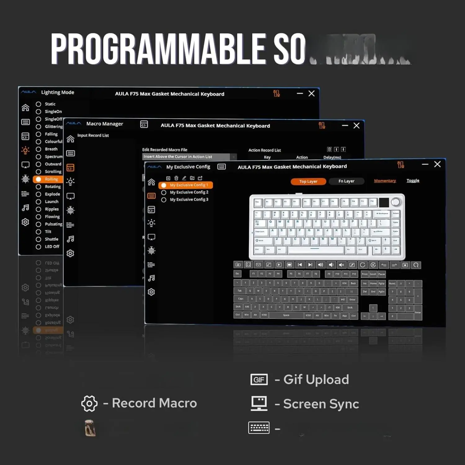 ·The F75 MAX keyboard is compatible with WIN, MAC, Android and Linux Systems. The software is only available for Windows system, but keyboard has on-board memory so the settings saved can be used on other systems.