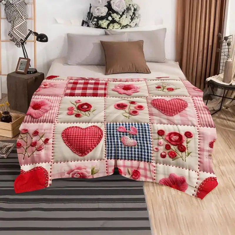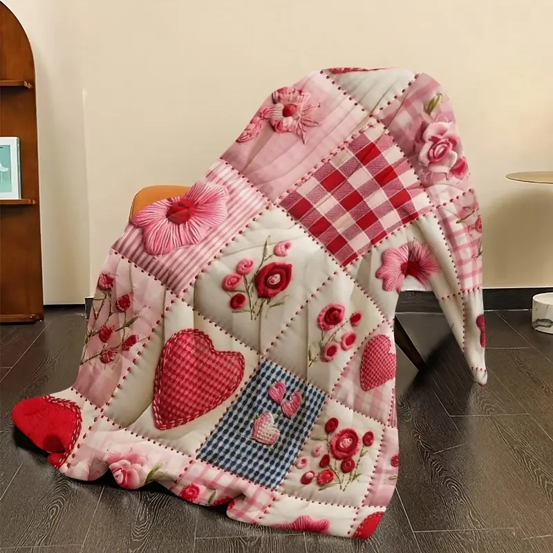Valentine's Day Heart Plaid Digital Print Flannel Blanket, Soft Comfortable Sofa Bed Throw, Office Nap Shawl, Outdoor Sports Multi-Purpose Blanket