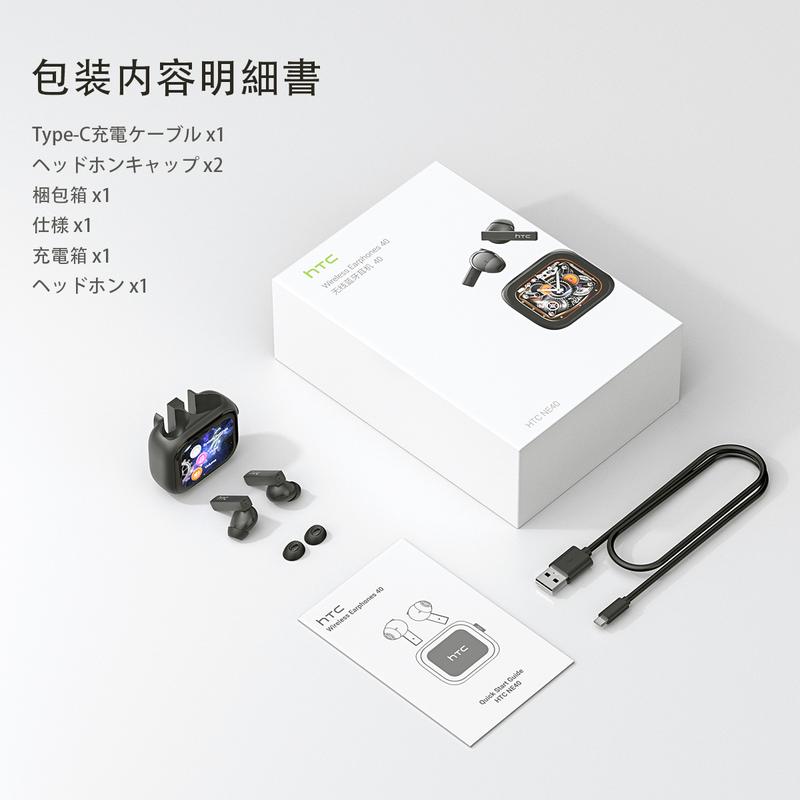 HTC NE40 Bluetooth 6.0 Headset, LED Display, High Frame Rate, Waterproof Wireless Headphones, App Support, In-Ear Headphones