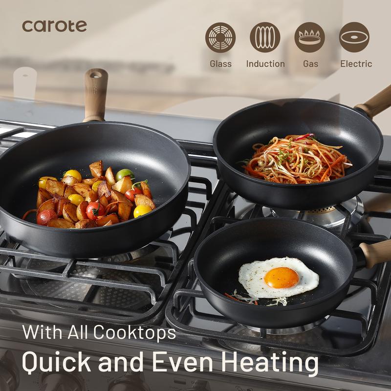 Create and serve with seamless ease. The comfortable, heat-resistant wooden handles allow you to move directly from cooking to serving. Paired with the easy-to-clean non-stick surfaces, this set simplifies your entire cooking process, turning elaborate meals into manageable tasks.