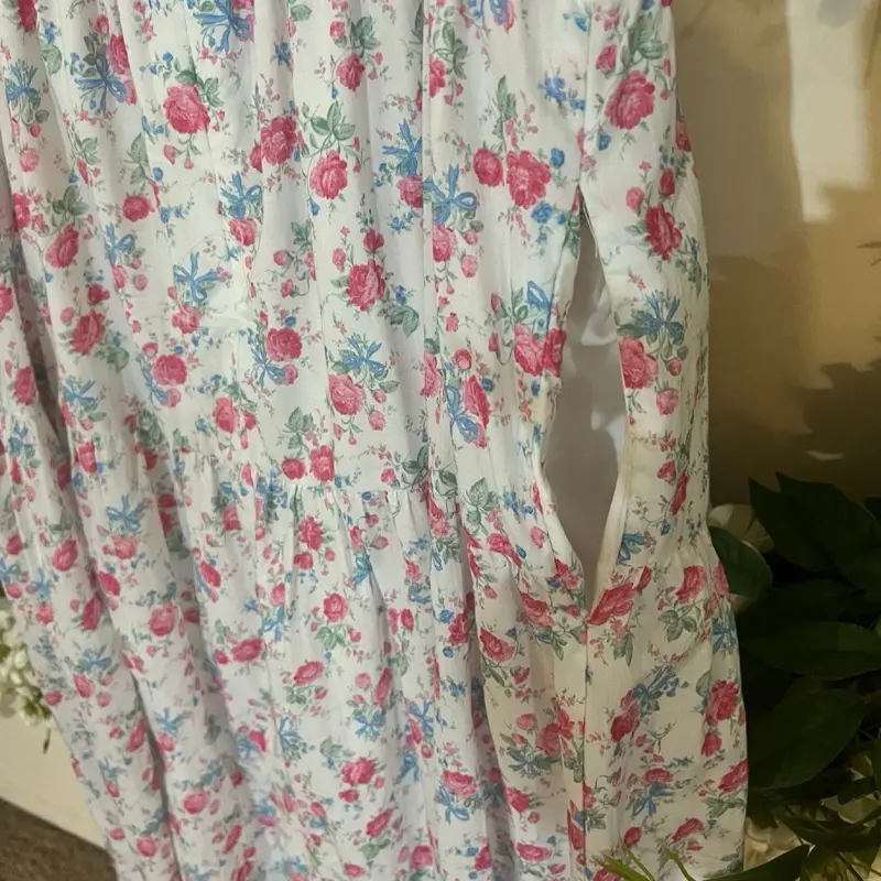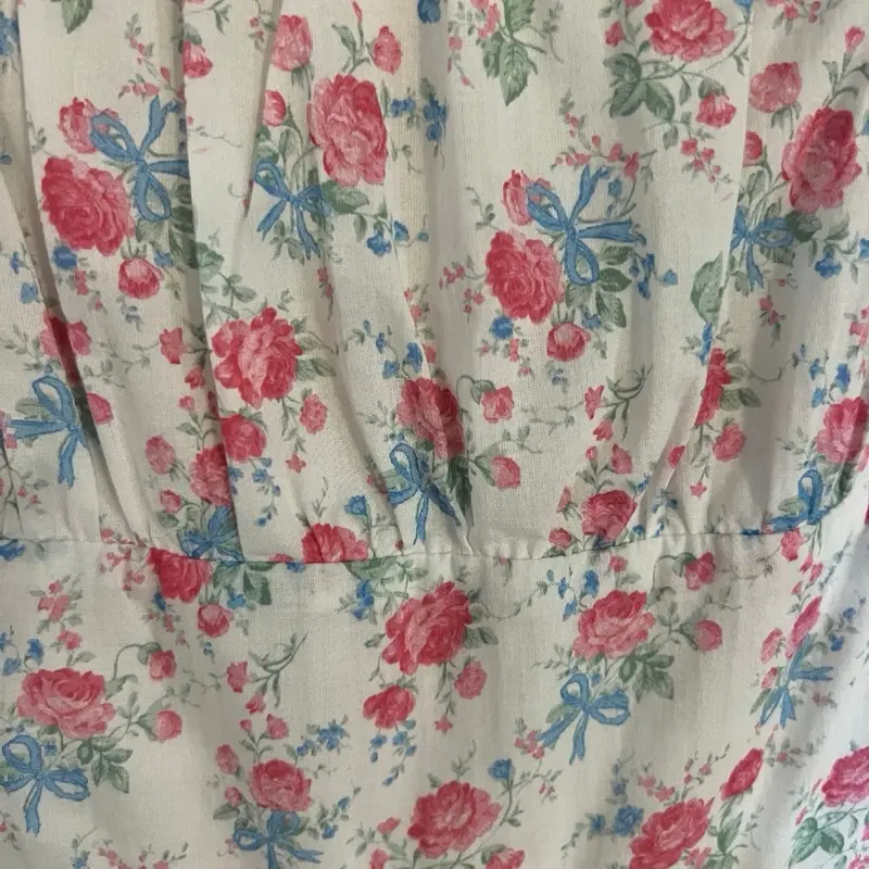 Altar’s State White Cotton Bow Floral Ruched Garden Dress M/6-8