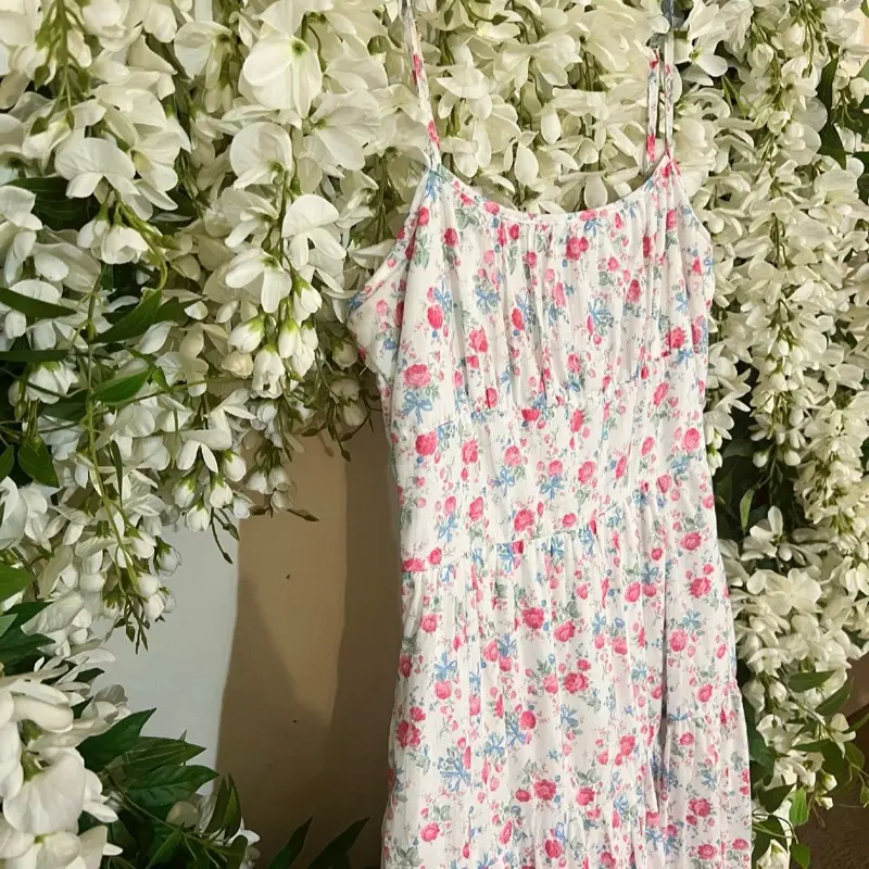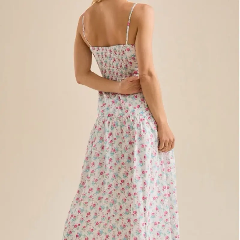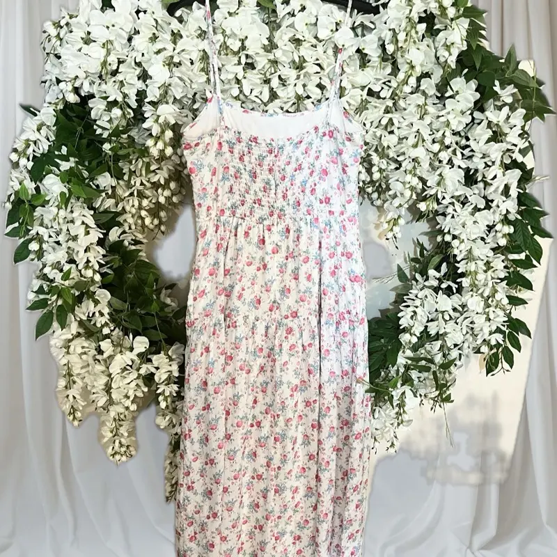 Introducing Altar'd State's elegant white cotton Bow Floral ruched garden dress. Crafted with luxurious 100% soft cotton and adorned with a lovely floral print, this dress boasts adjustable spaghetti straps and hidden pockets for convenience. Complete with a charming bow print, elevate your style with this comfortable elegant dress.