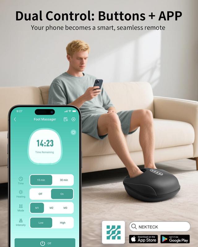 ·Nekteck Pro Foot Massager: Engineered with expertise from 500+ wellness specialists, the Nekteck 2025 Foot Massager redefines relaxation with Deep Kneading+ Compression. Our 3D Rollers and 360° Adaptive Air Compression boost massage comfort by 35%, while Ergo-Wrap Design cradles every curve of your feet for deep-tissue relief.