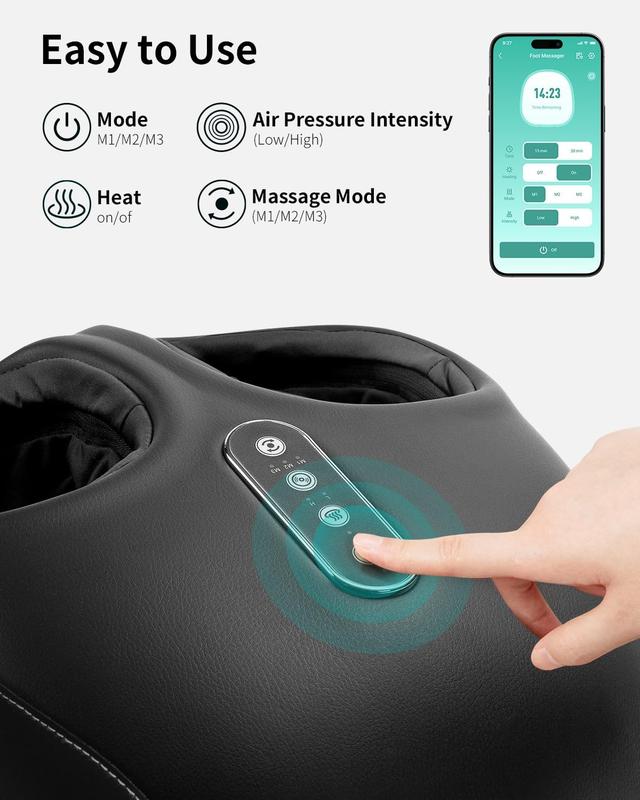 ·Smart App Control: Operate your Shiatsu foot massager remotely from your phone—no need to bend over to press buttons. Customize 15- or 30-minute massage sessions, save personalized preferences with one tap, and enjoy the convenience of the automatic memory function. Accommodates up to US men's size 13, making it ideal for the whole family.