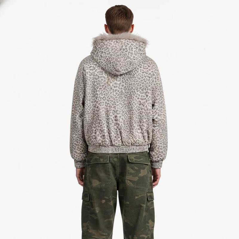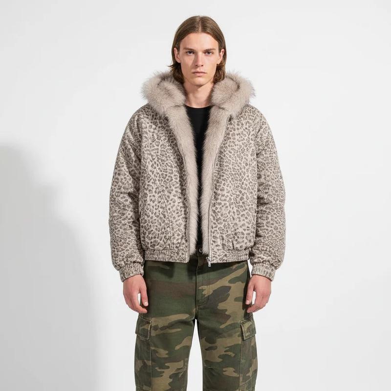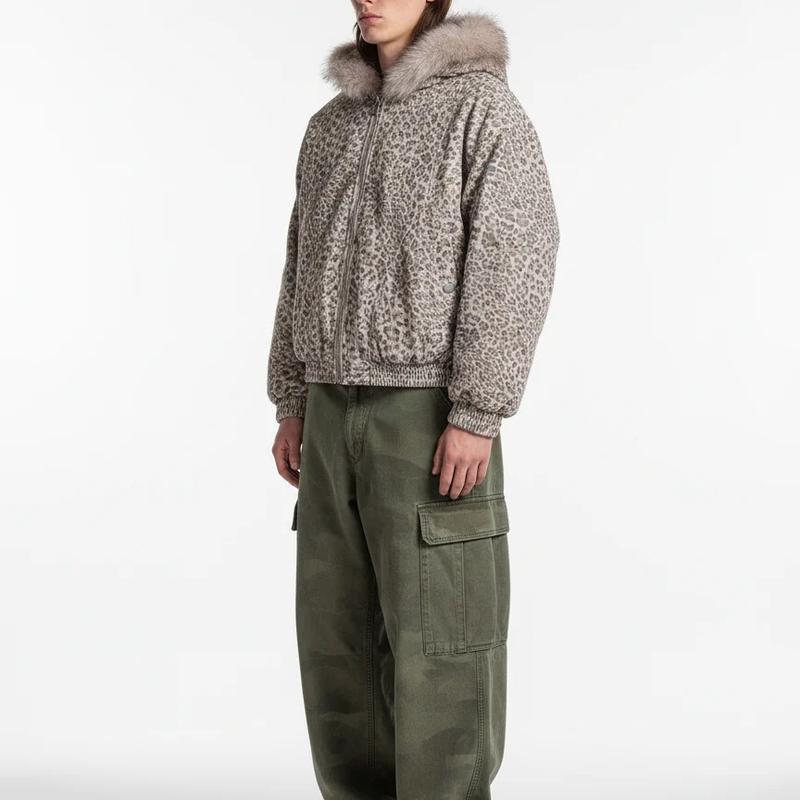Cotton Cheetah Print Mink Fur Hooded Jacket - 2270