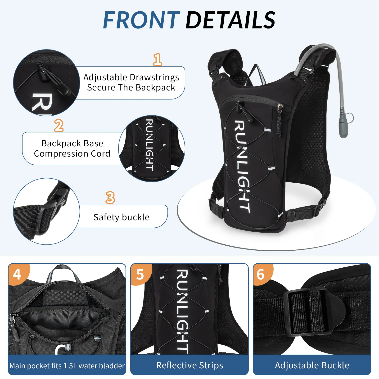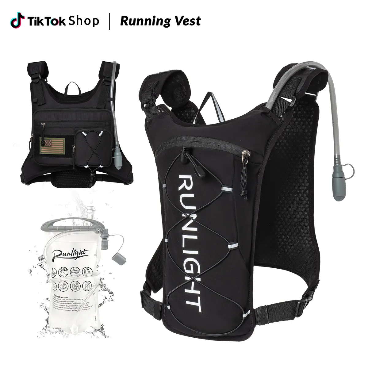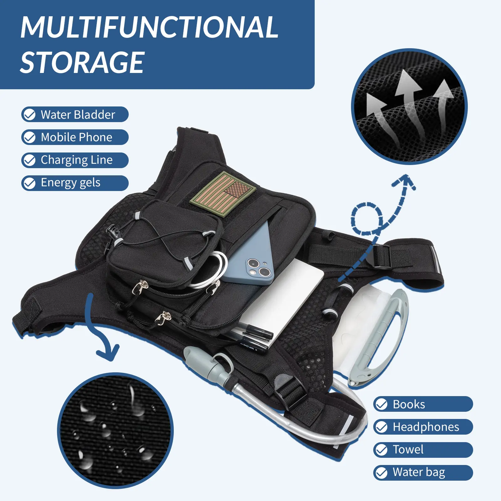 Lightweight Tactical Running Hydration Vest with Velcro Panel, 1.5L Leak-Proof Water Bladder, Adjustable Chest Pack for Unisex, Ideal for Trail Running, Hiking, Marathon and Outdoor Fitness