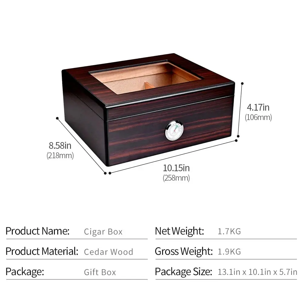 Cedar Cigar Box Humidor Large Cigar Case Portable With Humidifier Hygrometer For Men's Smoking Cigar Storage Fits 50 Cigars
