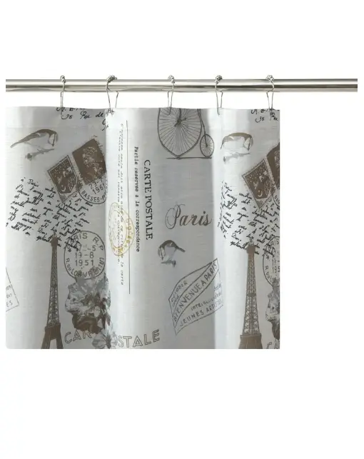14-Piece Paris Eiffel Tower Geometric Shower Curtain Set with Hooks and Liner, Gray, 70" x 72"