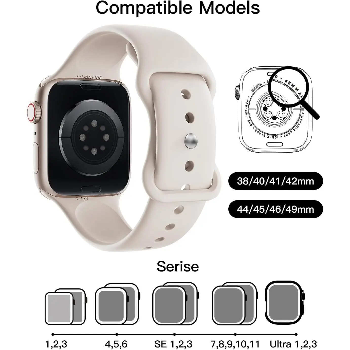 [Patent Pending] Compatible Models: premium silicone sport bands are designed for iWatch all versions.Uygun Apple Watch Ultra 3/2/1, SE 3/2/1, Series 11, Series 10, Series 9, Series 8, Series 7, Series 6, Series 5, Series 4, Series 3, Series 2, Series 1.Two size options: ①38mm/40mm/41mm/(42mm-Series 11 10) size for 5.1"-7.1" (130mm-180mm) wrist| ② 44mm/45mm/46mm/49mm/(42mm-Series 3 2 1) size for 5.9"-7.9" (150mm-200mm) wrist.Pls check the model on the back of your watch to select the correct sizeComfortable to Wear: This iWatch Bands for women and men are made from soft, breathable, skin-friendly and long-wearing silicone, prevents skin from irritation, lightweight, touch comfortable, water-resistant and sweat-proof.Perfect for workdays, workouts and overnight sleepAdjustable Size & Multi Colors: Our iwatch bands come with various colors for your choices, personalize your smartwatch to fit your mood and outfit in daily life. 38mm/40mm/41mm/(42mm-Series 11 10) Size fits 5.1"-7.1" (130mm-180mm) wrist. This bands for Apple watch can perfectly match your Apple watchSecure Fit & Easy installation: Our sport bands for iwatch bands for women men feature a completely new design of upgraded round holes and innovative pin-and-tuck closure design, which locks onto Apple watch interface precisely and securely.No tool needed, easy and direct installation and one button removalPerfect Gift: This apple watch bands look more fashionable, youthful and sporty. It's a thoughtful and well-made gift that is sure to be appreciated by anyone who receives it. Suitable for Christmas, New Year's, Father's Day, Mother's Day and birthdays as a surprise for your parents, loved ones, and friends.We offer 24/7 friendly support
