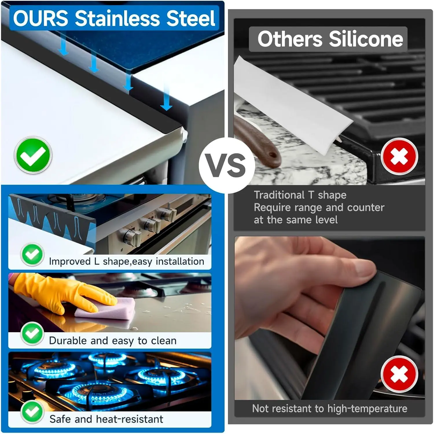 【Effortless to Maintain and Easy to Clean】 Stove Side Gap Guards effectively debris and spills from falling into the difficult-to-clean cracks between your stove and countertop. They are easy to remove, clean, and replace when necessary, making your kitchen maintenance effortless. Simply wipe with a damp cloth or pop them in the dishwasher for a hassle-free cleaning experience. Say goodbye to stubborn grime in your kitchen's narrow gaps