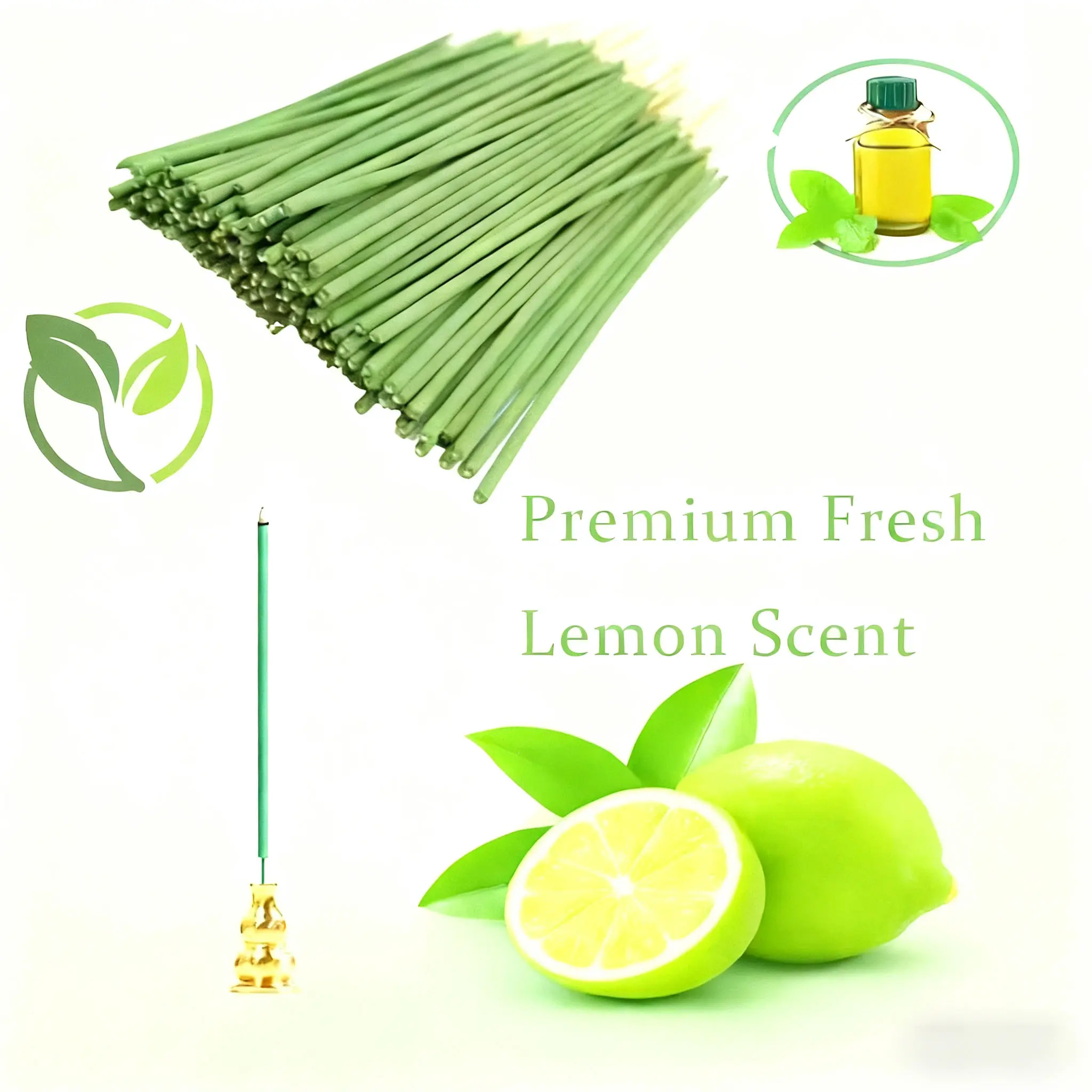 5. 22cm Blue Lemon Incense Sticks, Plant Essential Oil Extract, Lemongrass Scented Freshener, Ideal for Camping, Meditation, Bedroom, Office Air Purification