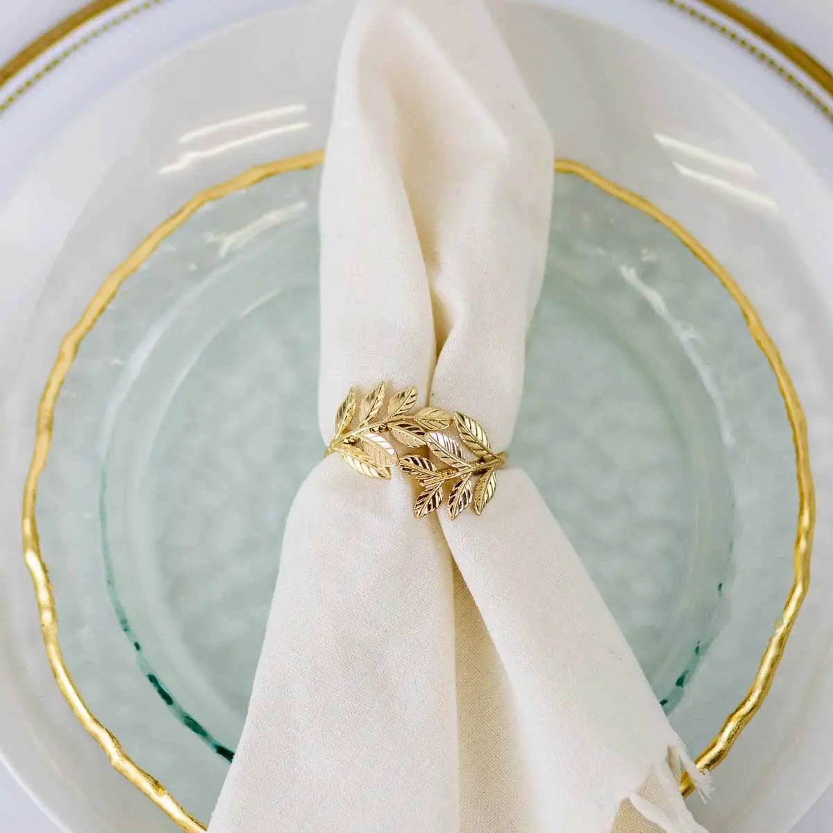 A classic laurel motif in brushed gold that instantly dresses up your tablescape—from holiday to everyday.