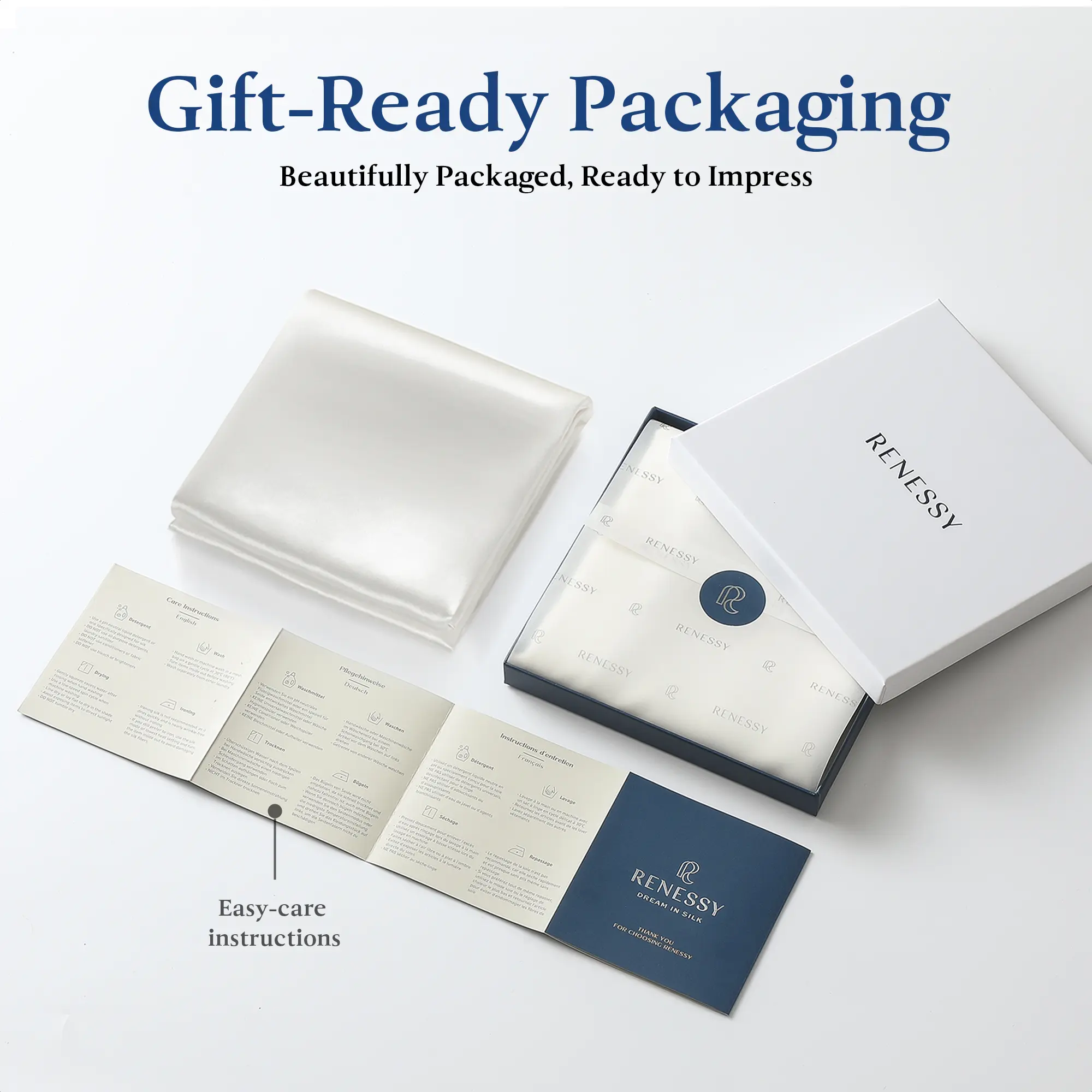 👌 SIMPLE CARE | RENESSY silk is designed to maintain its softness and vibrant color over time. Just wash at 30°C/86°F with a pH-neutral detergent, and it dries quickly with minimal wrinkles - no ironing needed.