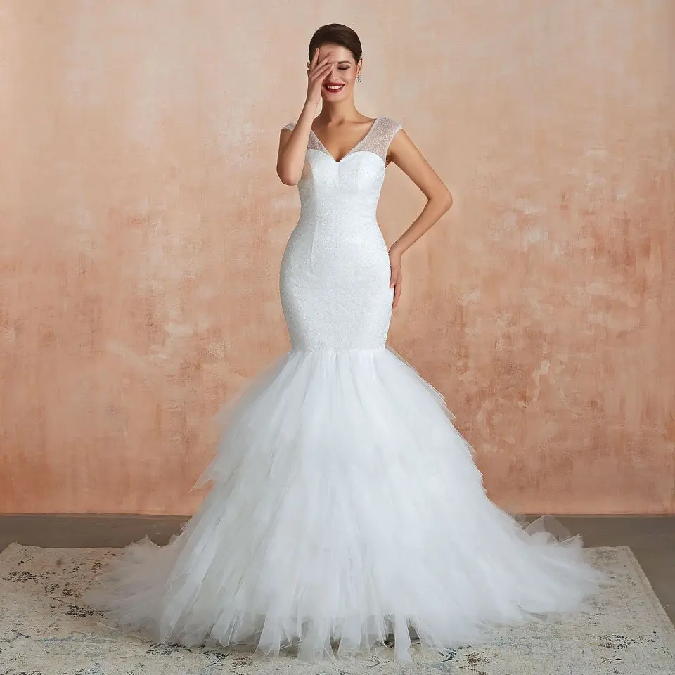 New Fishtail Skirt Wedding Dress Big Tail Bride Female Lead Yarn Mermaid Waist Backless V-Neck Customization