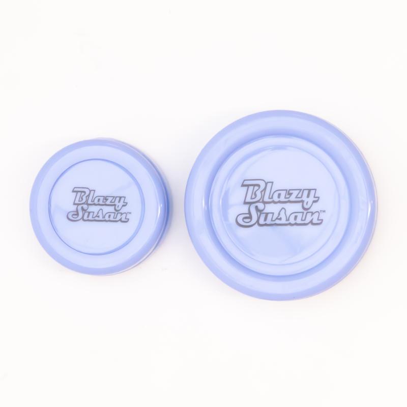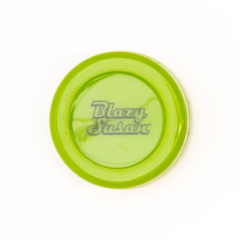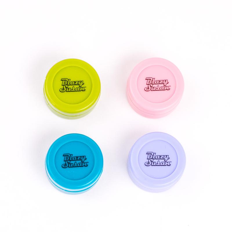 ·Color Options: Available in Pink, Teal, Green, and Purple, each featuring the Blazy Susan logo and compact design.