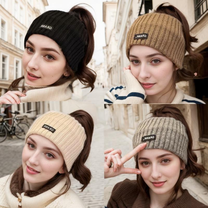 Women's Solid Color Pom Pom Decor Beanie Hat, Casual Warm Thickened Knit Hat for Fall & Winter, Fashion Accessories for Women & Girls Bonnet With Bunny Ears Bonnet
