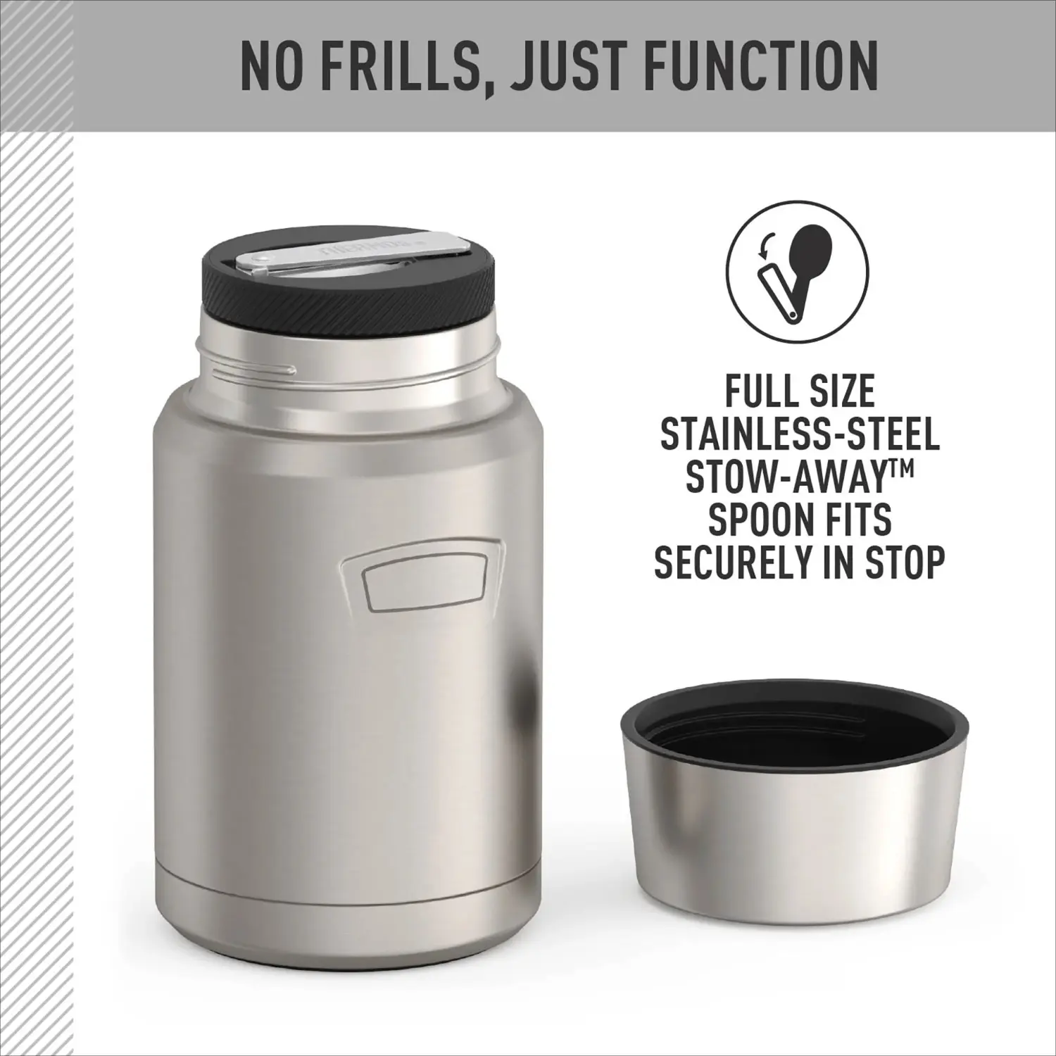 Vacuum Insulated Food Jar w/ Folding Spoon, 24oz, Matte Stainless