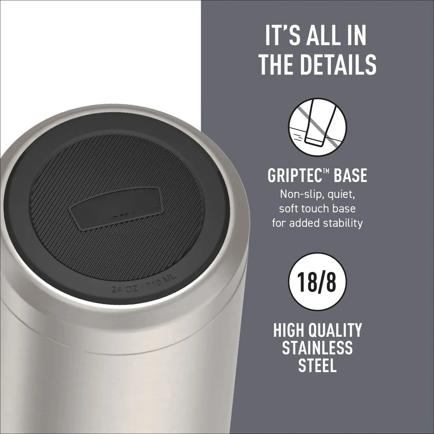 Griptec quiet, soft touch, non-slip base for added stability