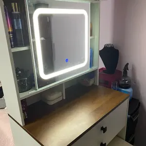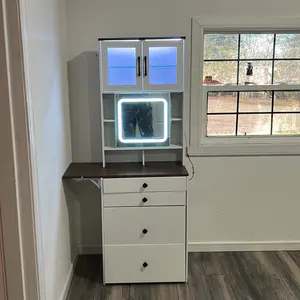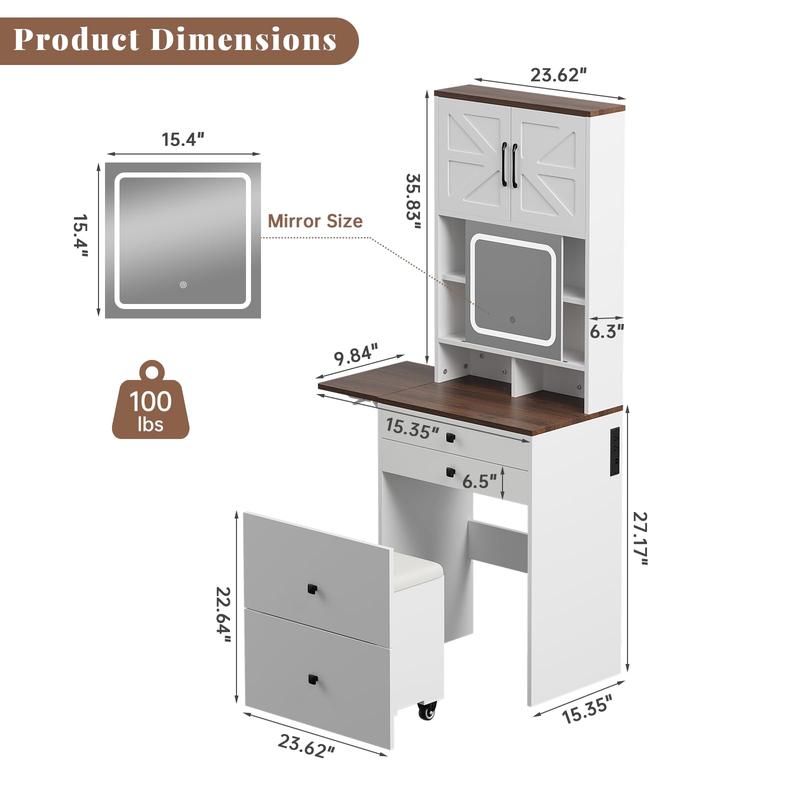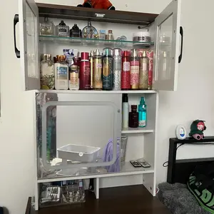 Easy to assemble, beautiful compact vanity. Very spacious highly recommend. I love that he has a mirror with different light settings very happy with this purchase.