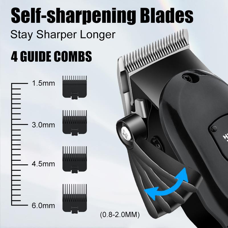 [BARBER'S CHOICE] 20 in 1 Professional Hair Clippers Trimmer - High Torque Brushless Motor & DLC Coated -Detachable Blade- The Black Obsidian